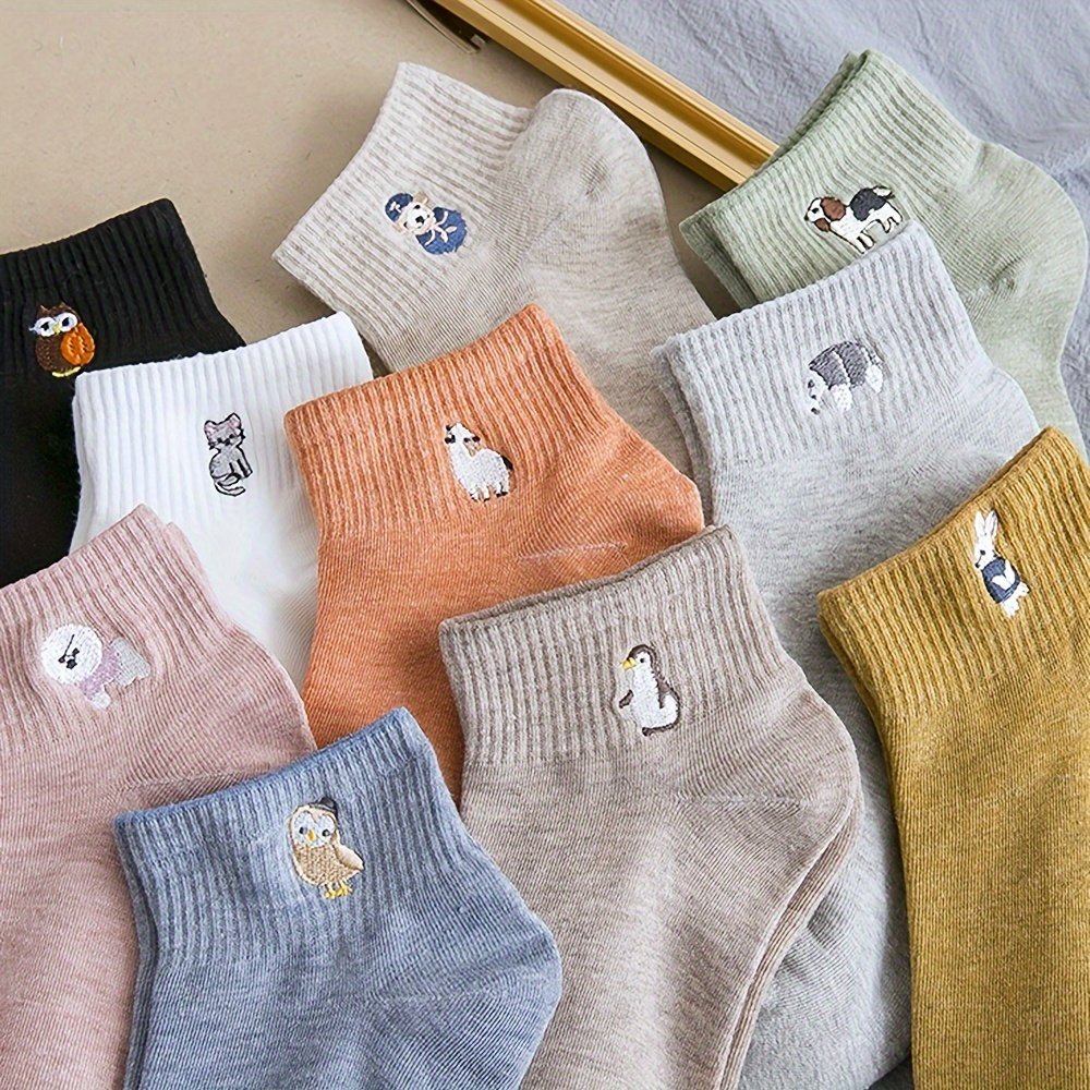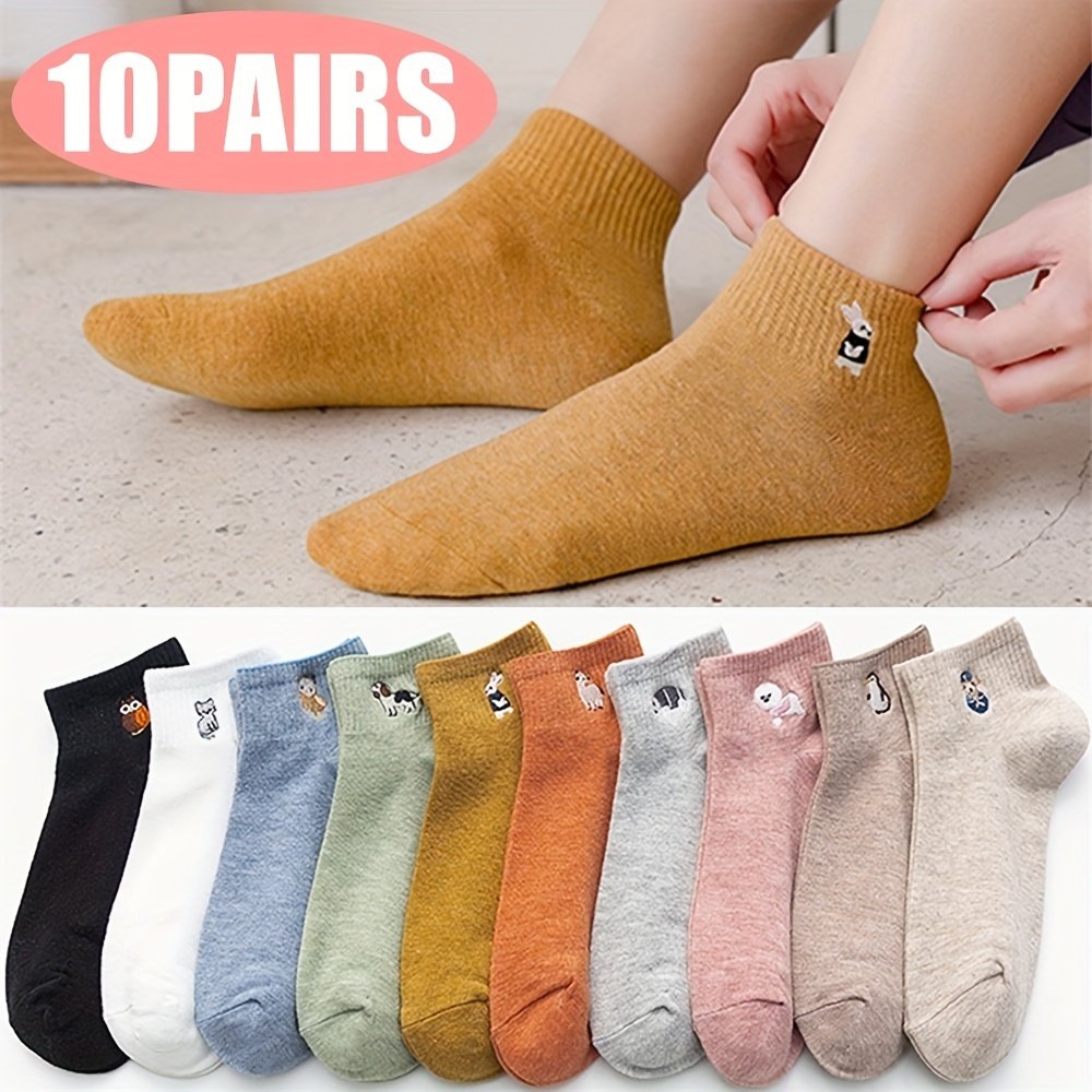 10 Pairs of Women's Socks, Women's Cute Embroidered Socks, Ankle Socks, Boat Socks, Low Cut Ankle Socks, Midsole Socks, Short Socks