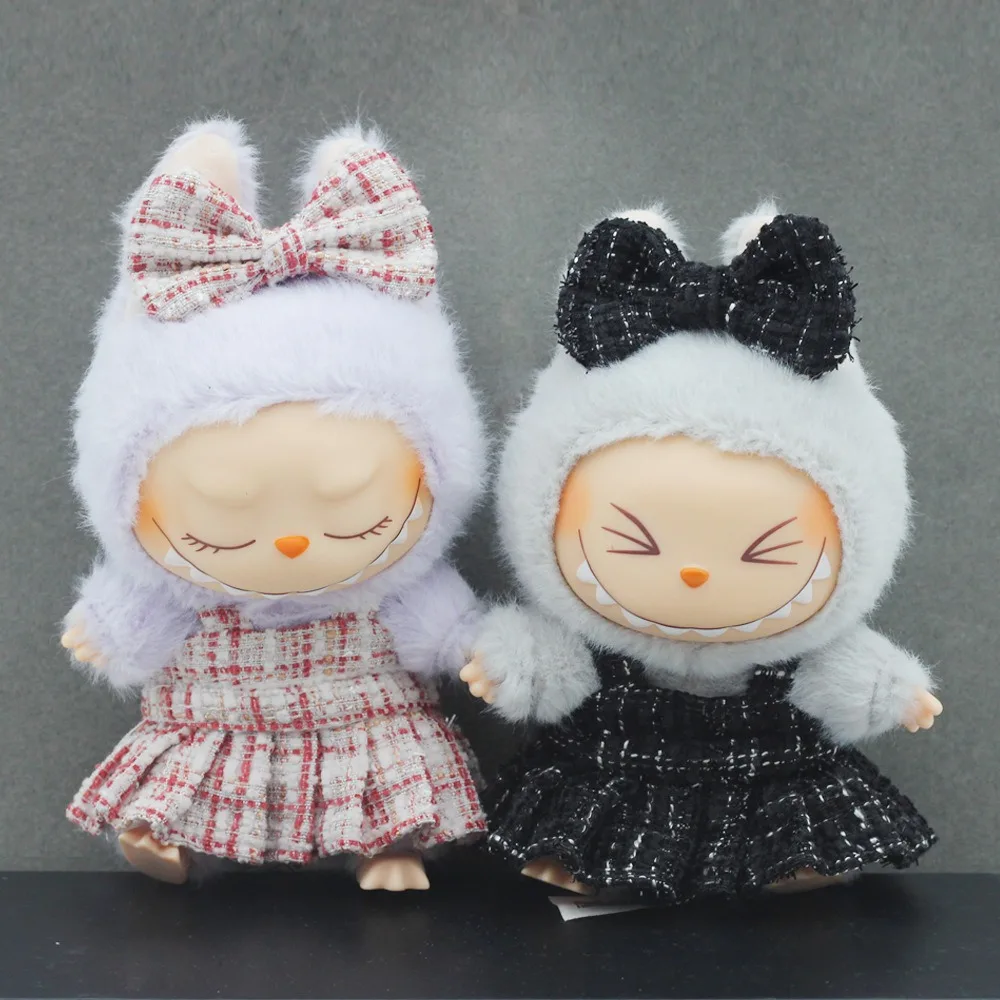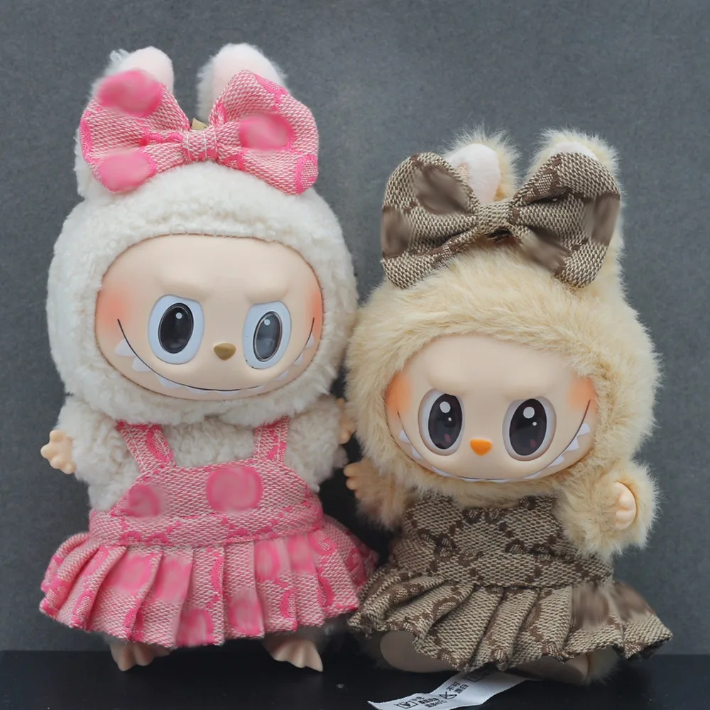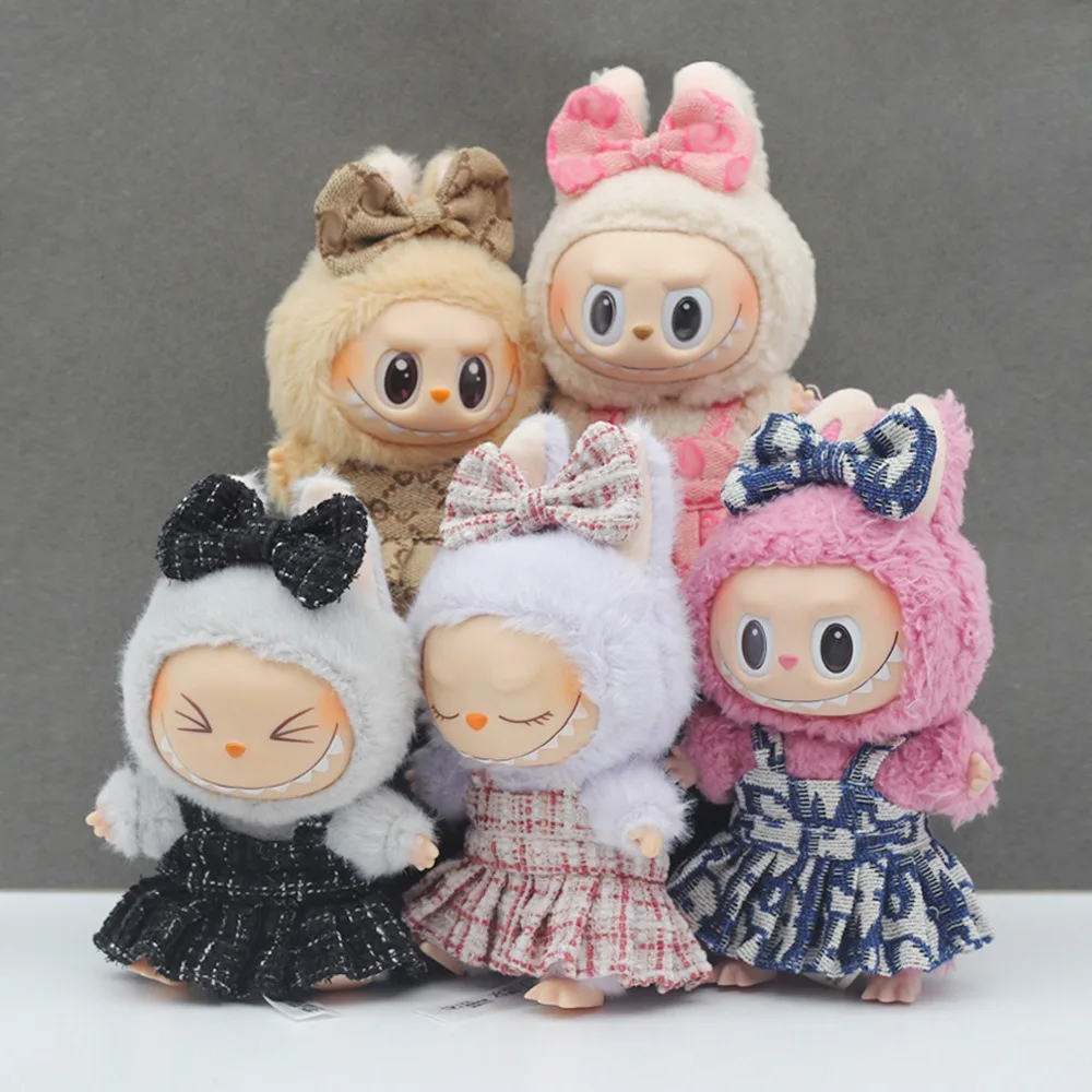 17cm Labubu Handmade Custom Gorgeous Doll Clothing Pink Striped Sweater with Fur Hat and Cup Pendant for Stylish Accessories