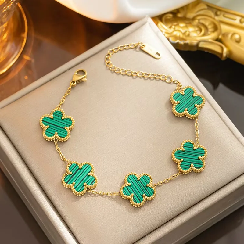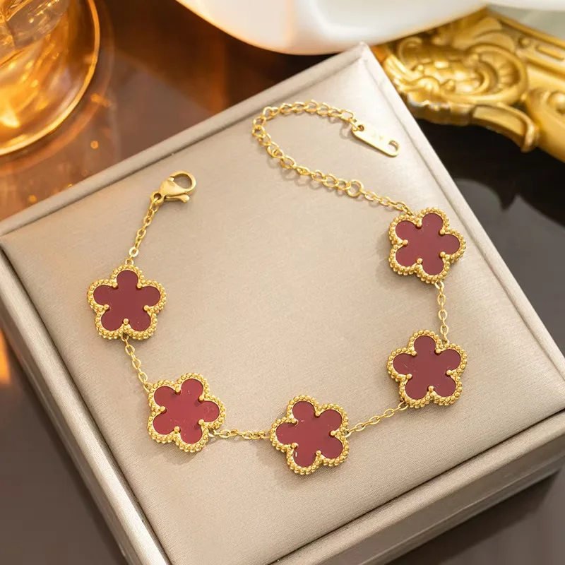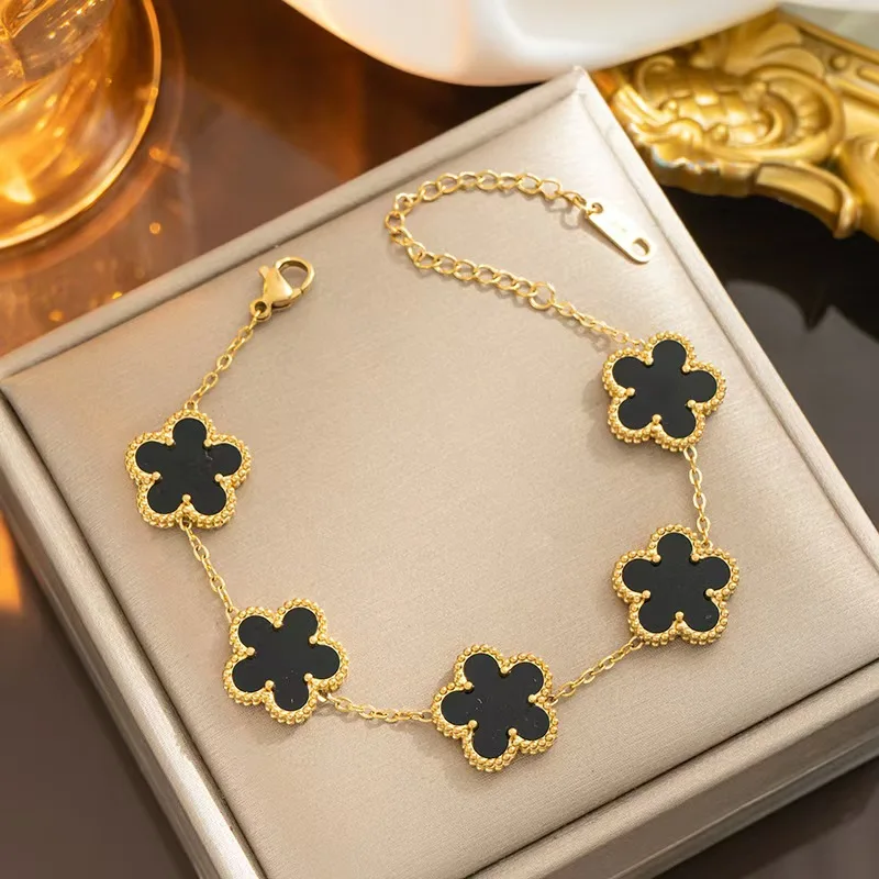 Be the first to review “1pc Luxury Stainless Steel Bracelet for Women, Double-sided Five Leaf Flower Bracelet for Women Clover New Fashion Jewelry Gifts”