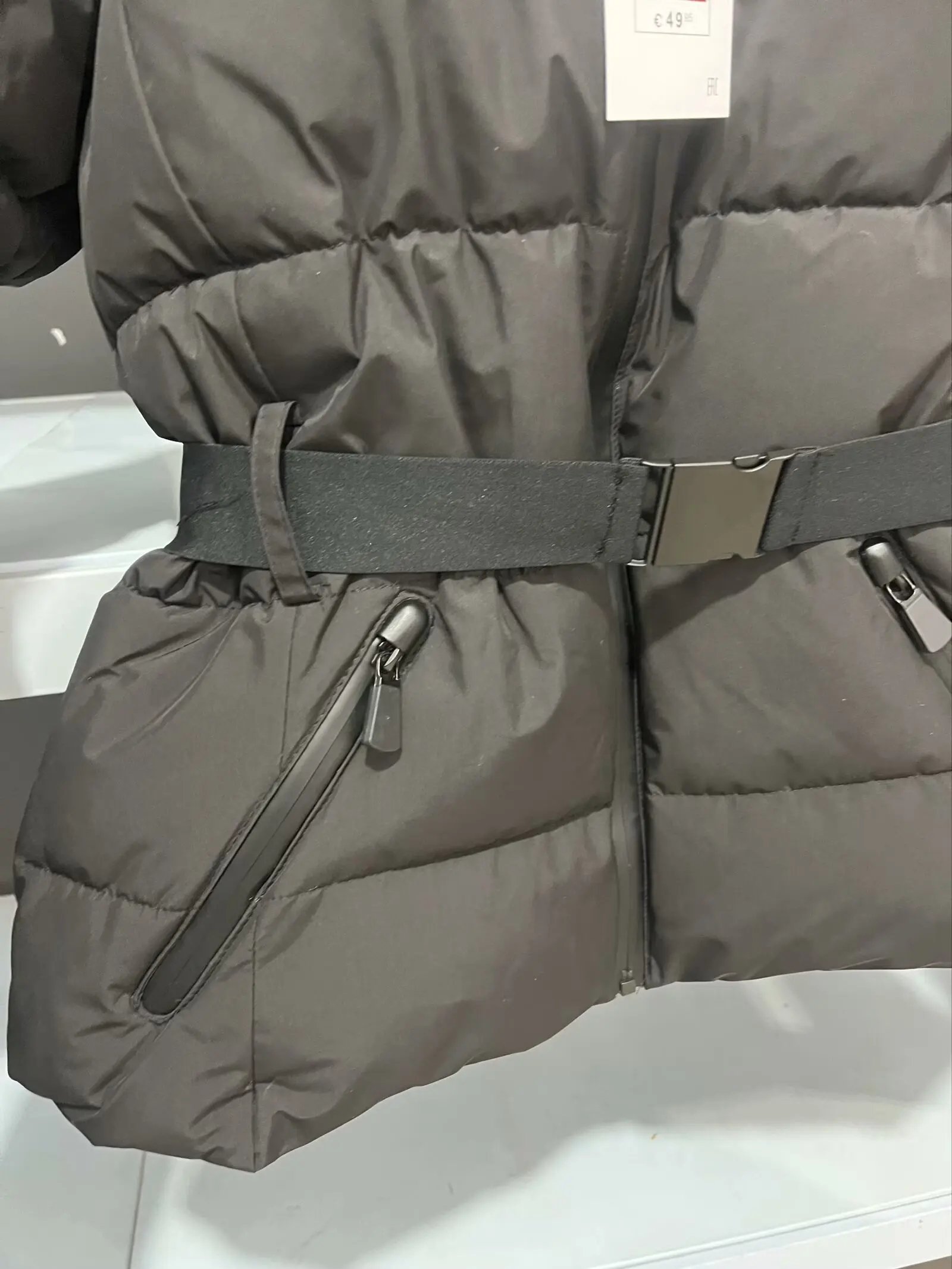 This 2025 RARA women's parka features a trendy waist belt and hood, adding a stylish touch to your commute.