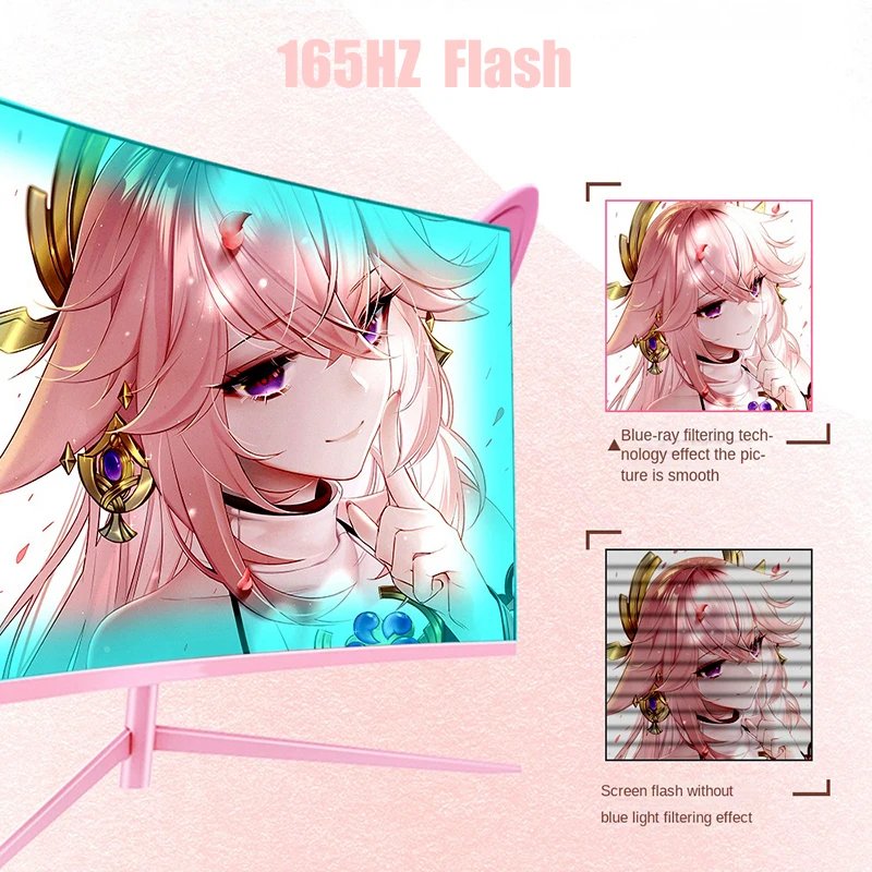 27inch Curved Pink Monitor QHD 165hz 1800R Gaming Display HDR10 Free-Sync Desktop Screen 1ms GTG With Speakers Tilt Adjustable