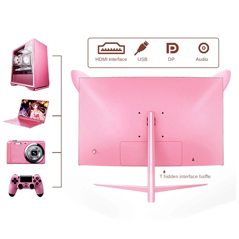 This pink monitor support 75x75mm VESA mount, you can install your favorite VESA stand or arm according to your own ideas to better suit your actual needs