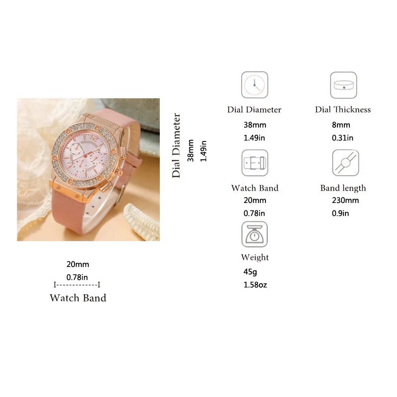 Be the first to review “2PCS Set Pink Luxury Rhinestone Watches Women Crystal Quartz Bracelet Watches Wristwatch Ladies Dress Wristwatch Clock Relogio”