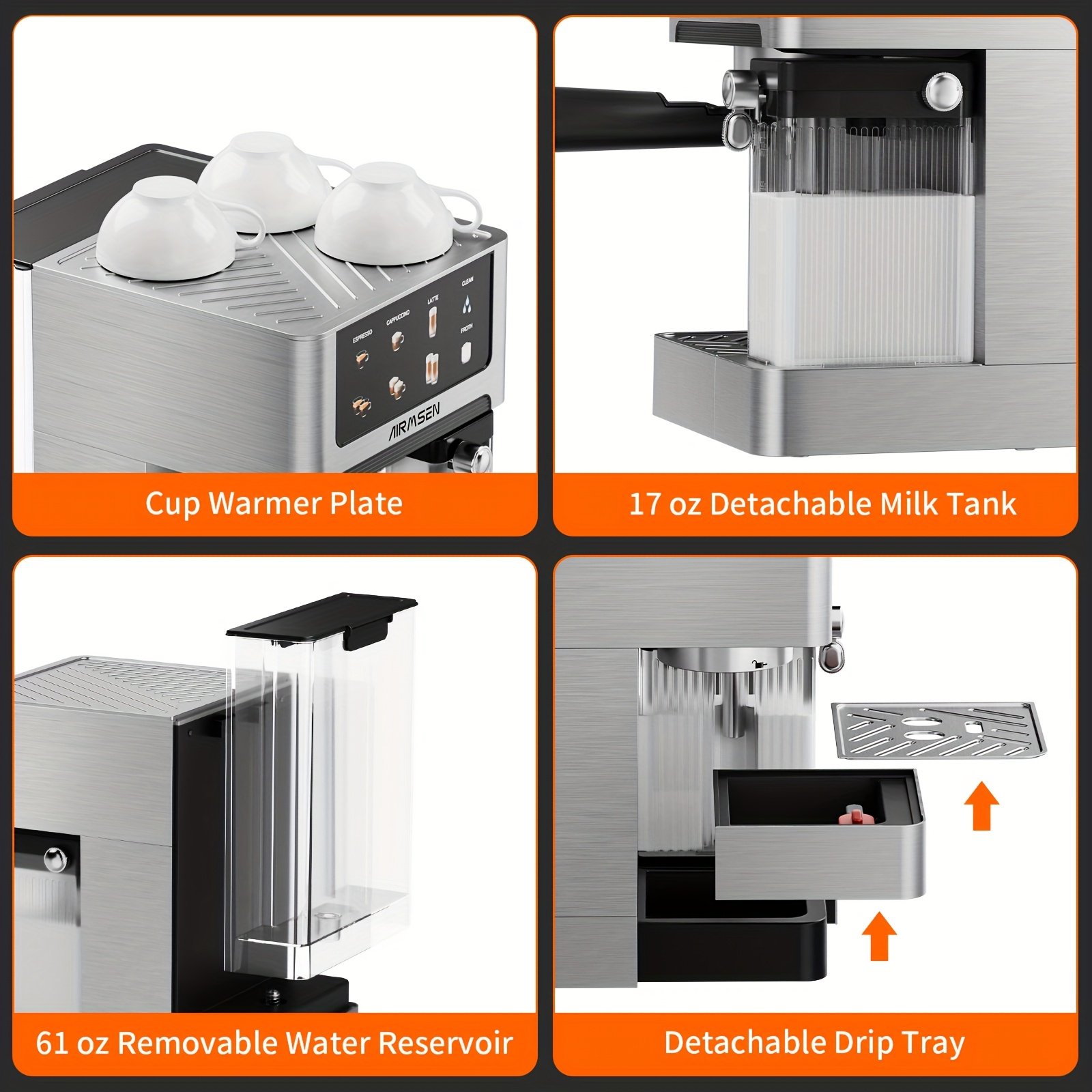 3-in-1 Multifunctional Stainless Steel Coffee Maker With LED Touch Display, Portable Cappuccino Maker With Automatic Milking Machine, Perfect For Home Use