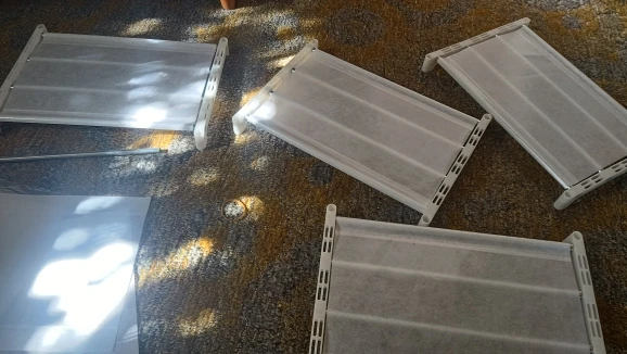 unique new items. it is very sturdy and strong. one improvement would be to put a piece of cardboard under the plastic so you can set small items on it. don’t throw away the carton because you can use that cardboard to make four inserts. The Chinese are very innovative and thoughtful society.