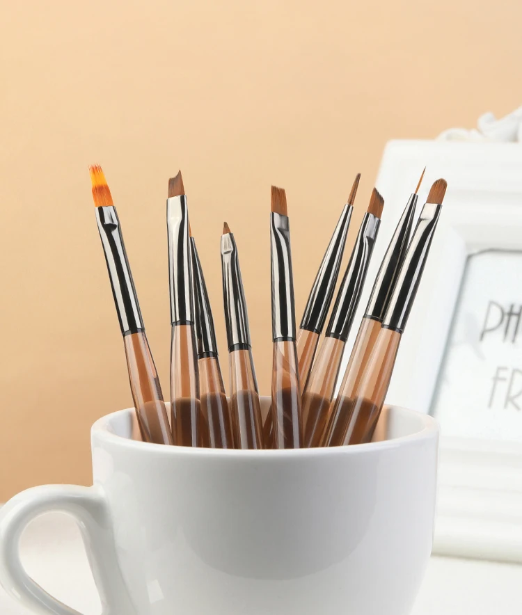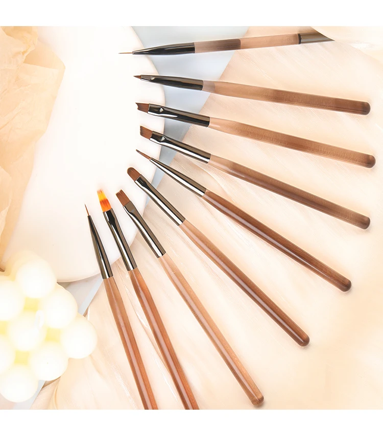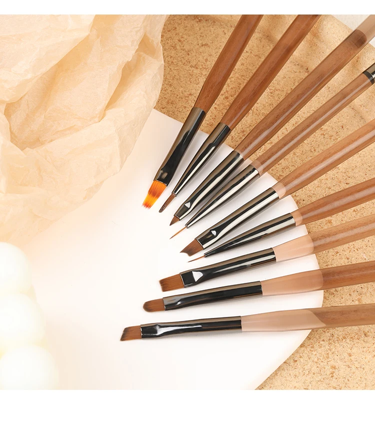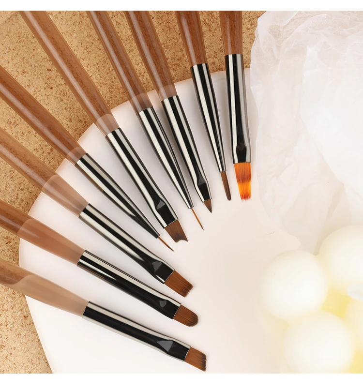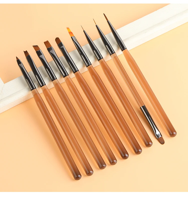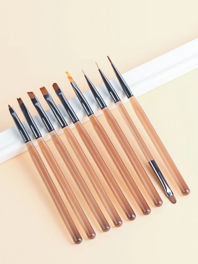 9PCS Acrylic Handle Gradient Blooming Effect Nail UV Gel Liner Brush Drawing Pen Painting Stripes Flower Manicure Nail Art Tools