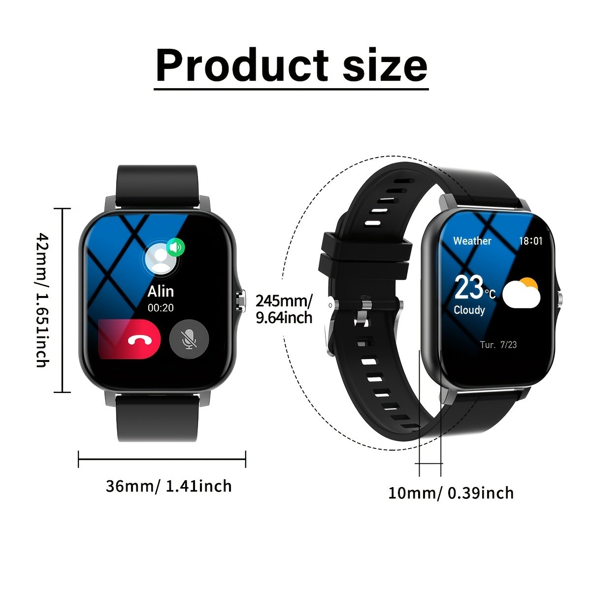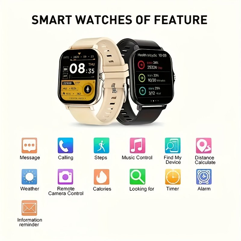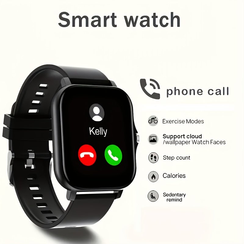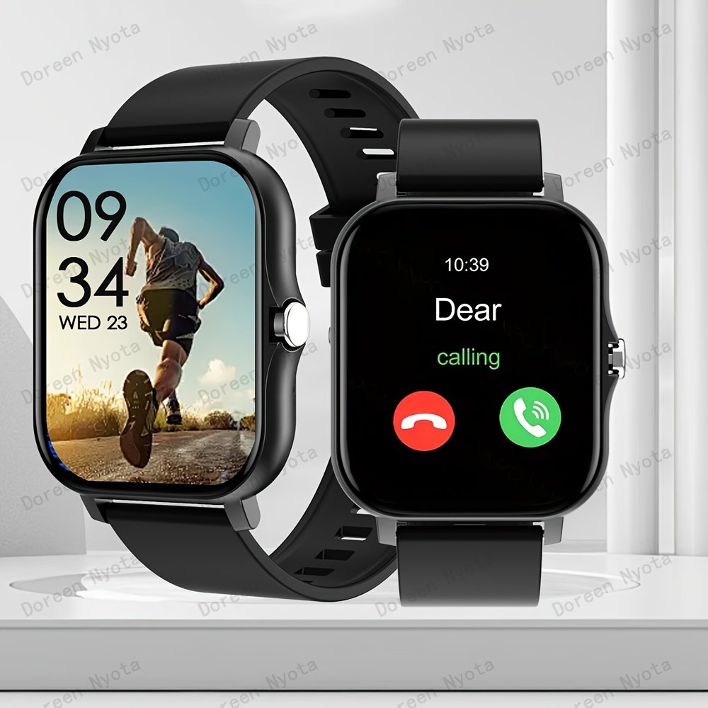 A Multifunctional Square Dial Smart Watch Compatible With Android/iPhone, Featuring Sports Tracking, Information Reminders, Phone Answering, Sports Date Alarm, And Weather Forecast.