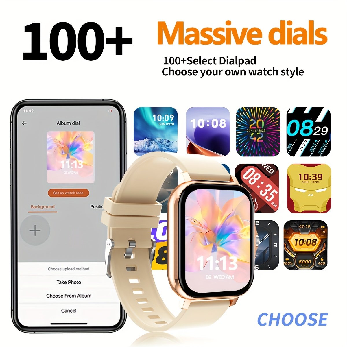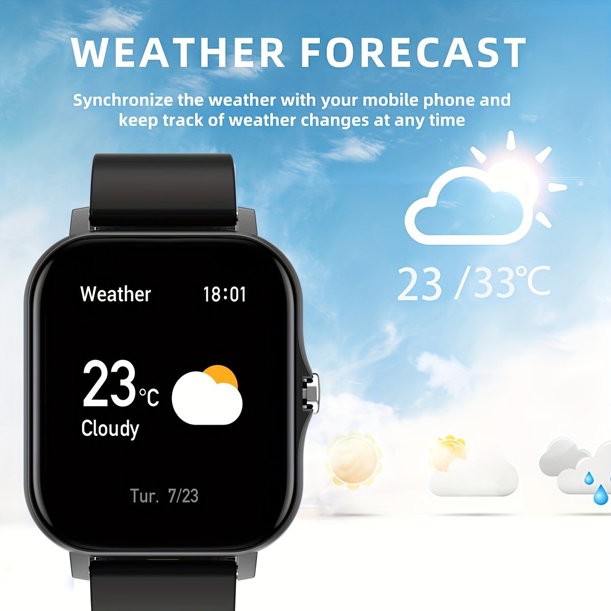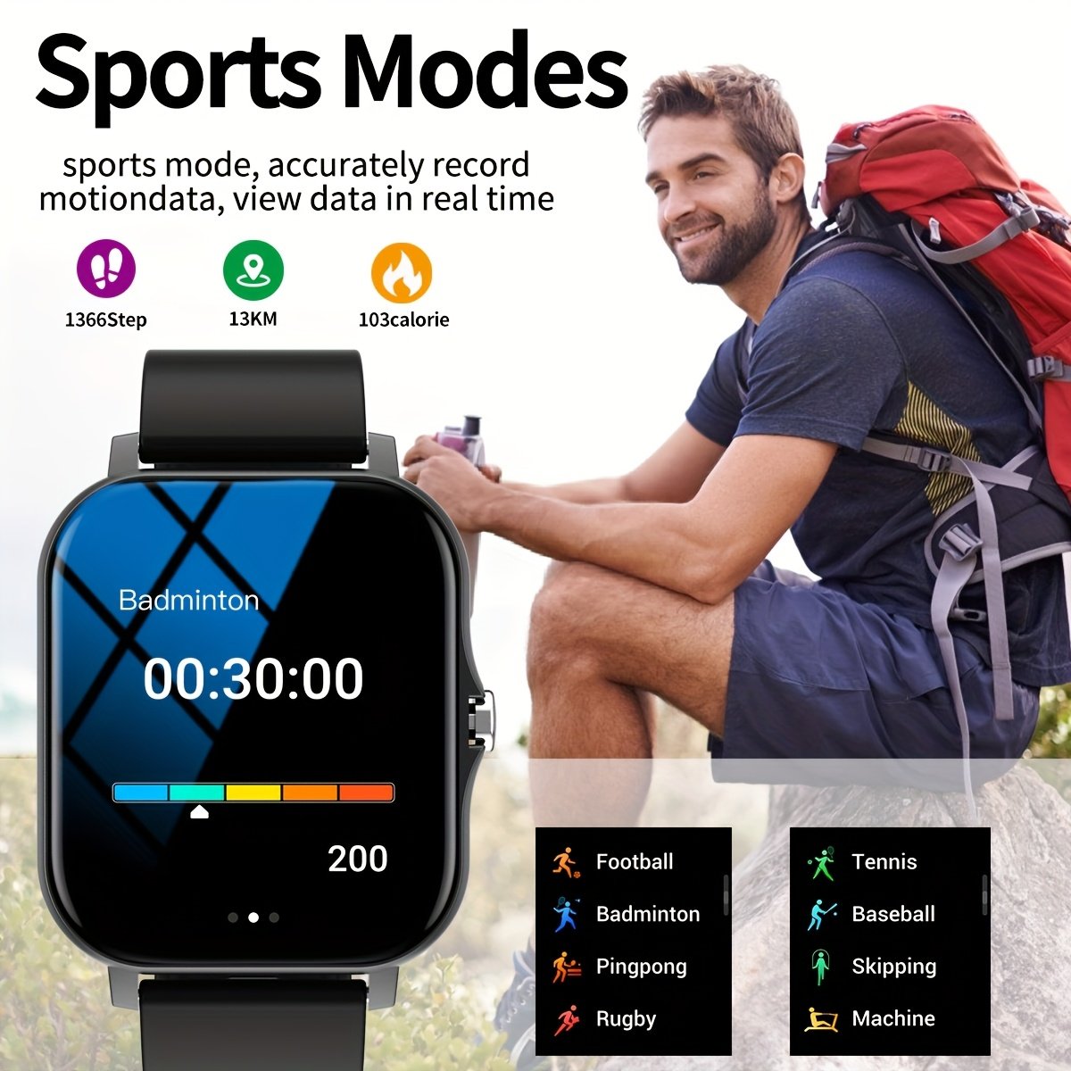 A Multifunctional Square Dial Smart Watch Compatible With Android/iPhone, Featuring Sports Tracking, Information Reminders, Phone Answering, Sports Date Alarm, And Weather Forecast.