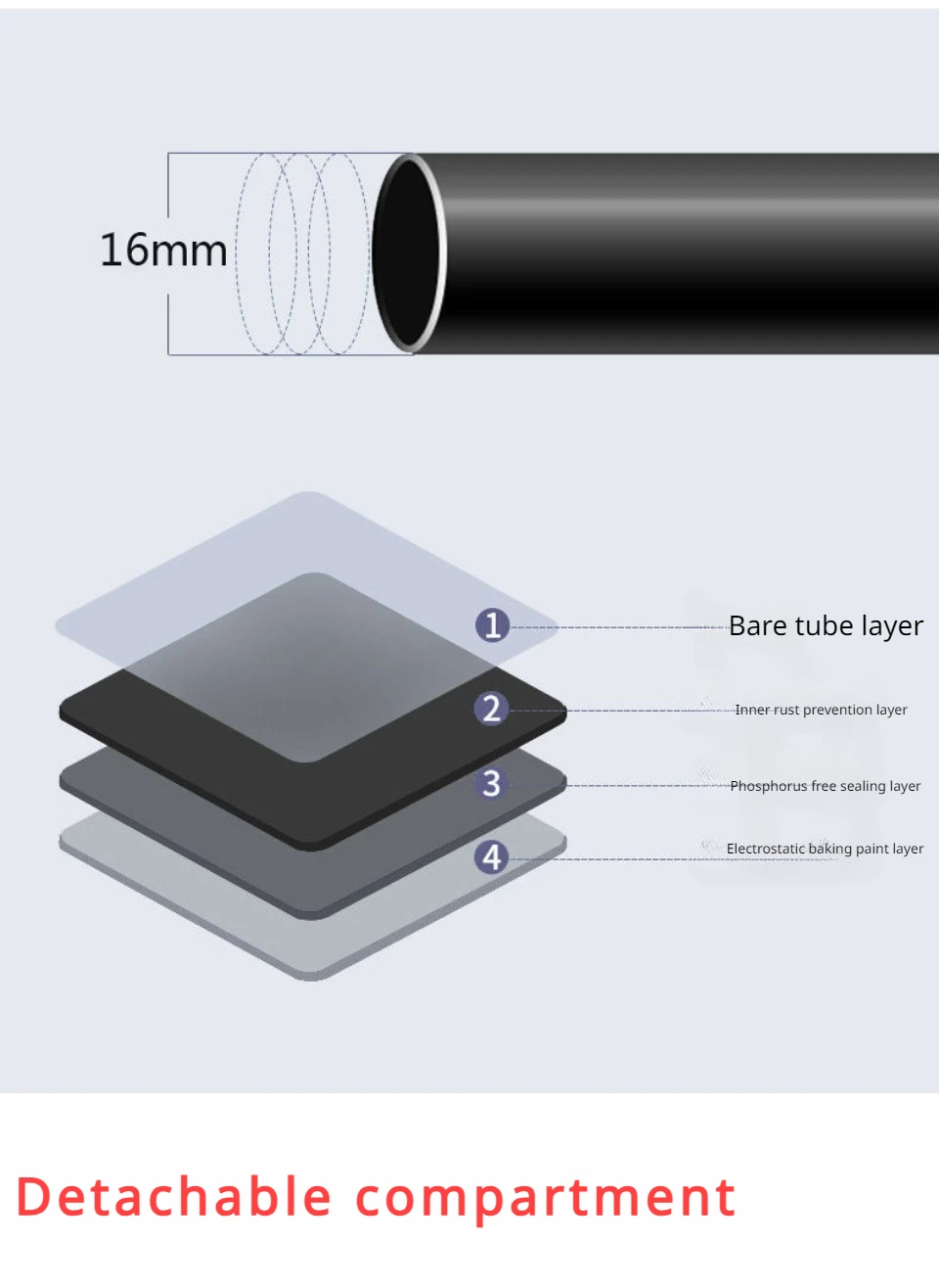 Features: Detachable compartment can store higher shoes by removing the steel pipe