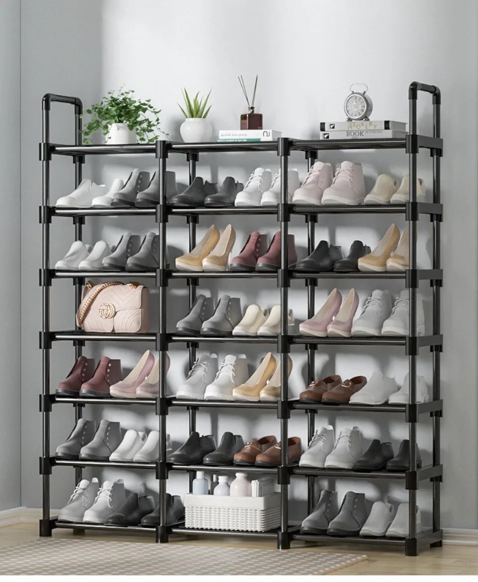 Assembled Shoe Rack Simple Diy 3 Rows Multi-Layer Shoecase Metal Removable Entryway Shoerack Sneakers And Boots Organizer Shelf