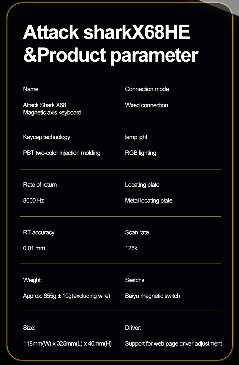 Be the first to review “ATTACK SHARK X68HE Magnetic Switch Mechanical Gaming Keyboard Wired 8K Polling Rate E-Sports Gamer Keyboard 0.01mm RT Accuracy”