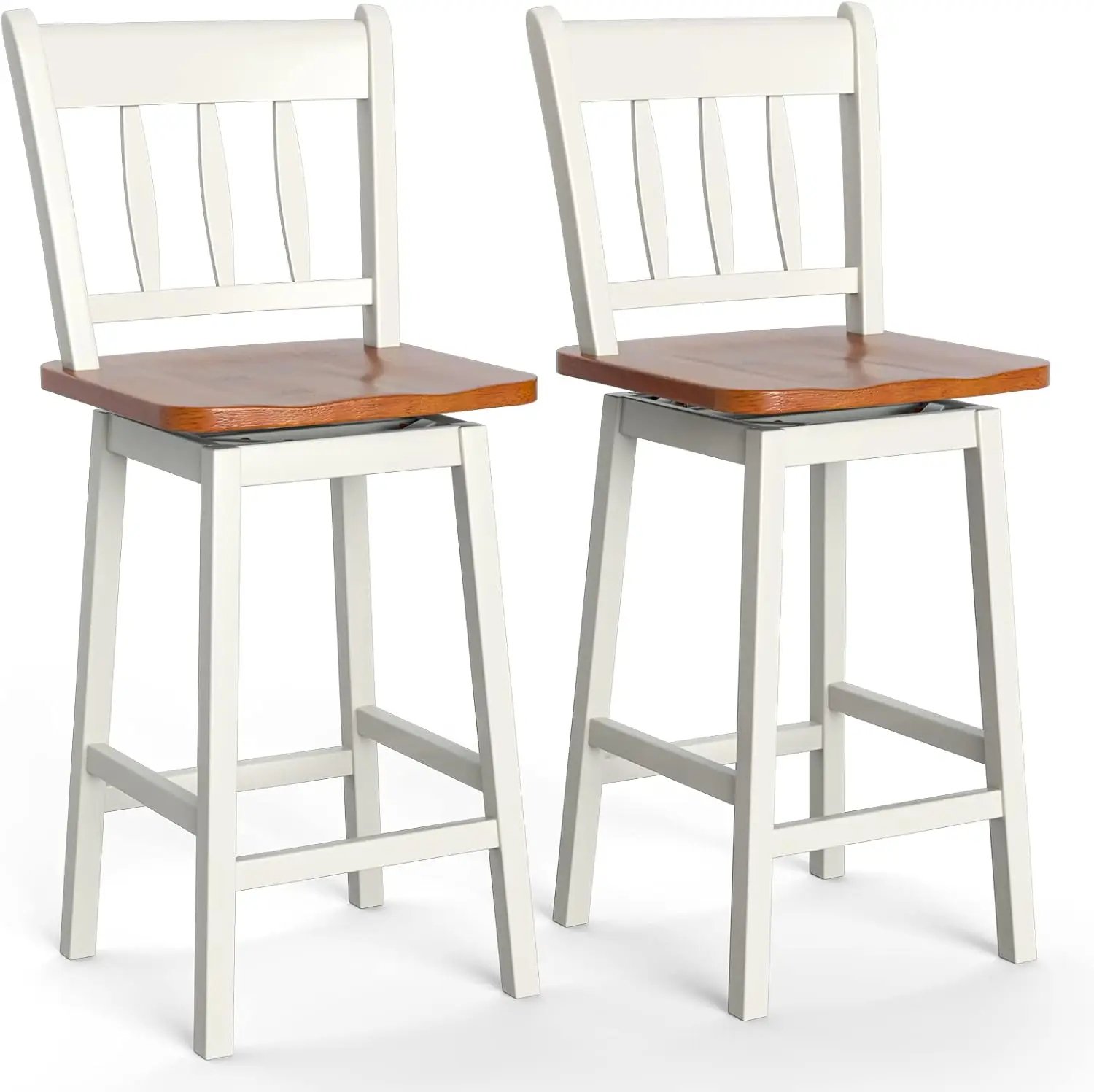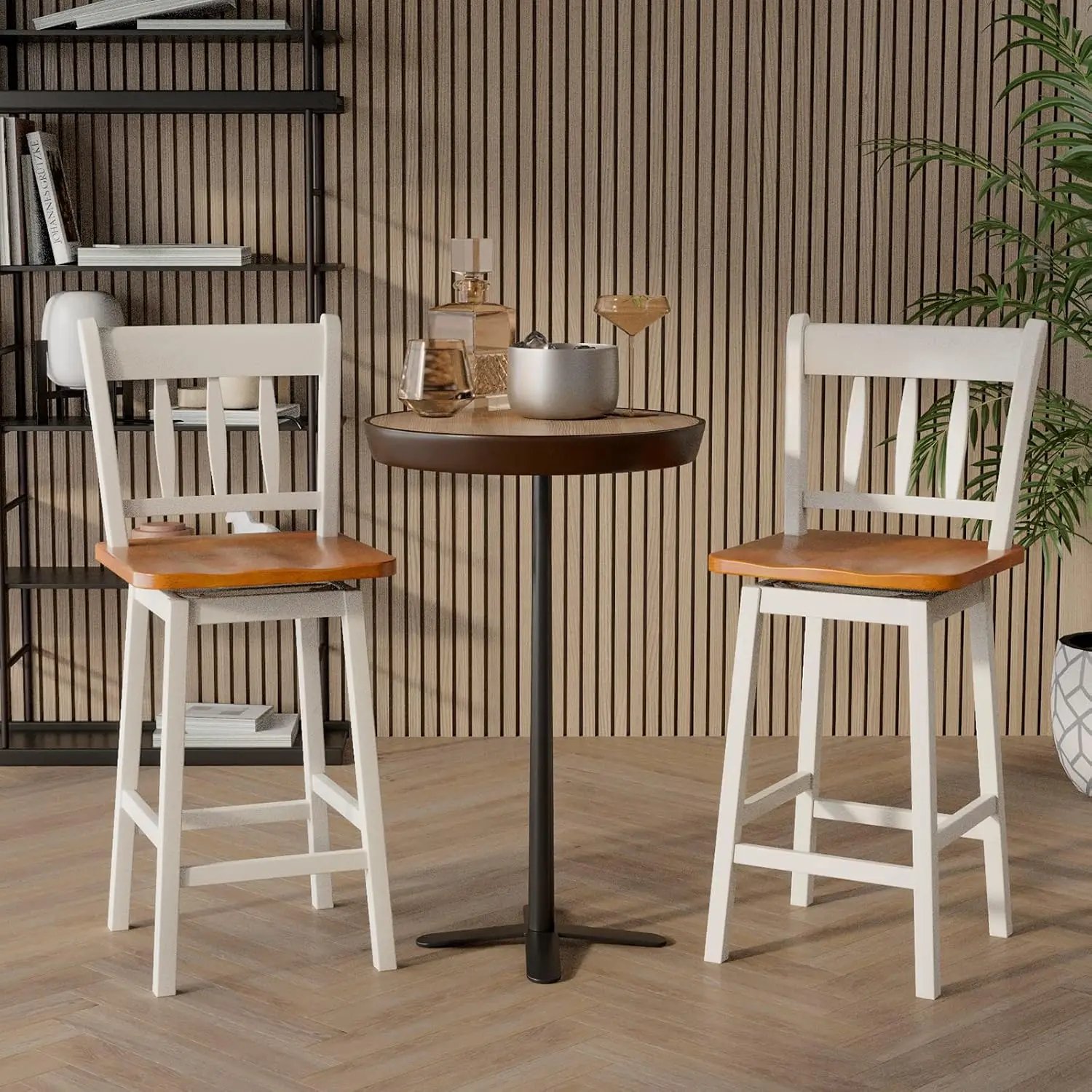 Bar Stools Set of 2, 24.5 Inch Rubber Wood Bar Chairs with 360°Swiveling, Footrest, Swivel Counter Height Barstools Ideal
