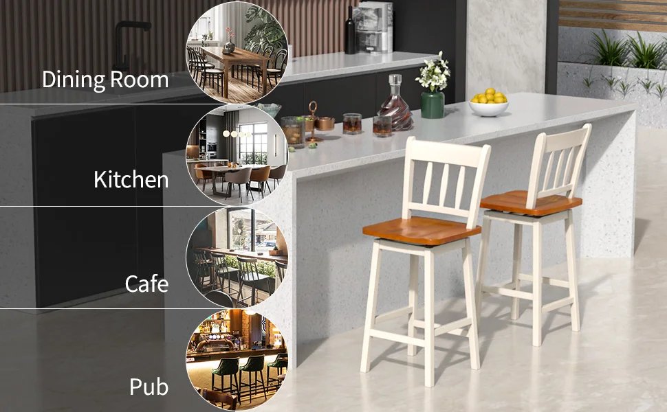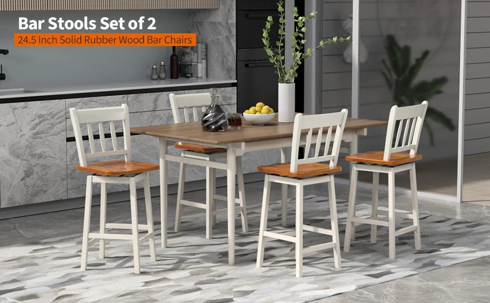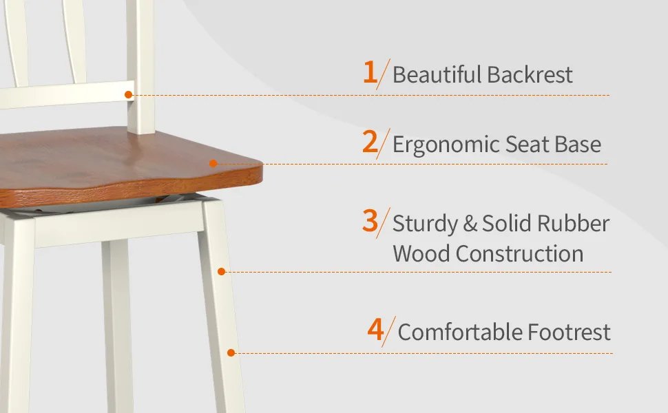 Be the first to review “Bar Stools Set of 2, 24.5 Inch Rubber Wood Bar Chairs with 360°Swiveling, Footrest, Swivel Counter Height Barstools Ideal”