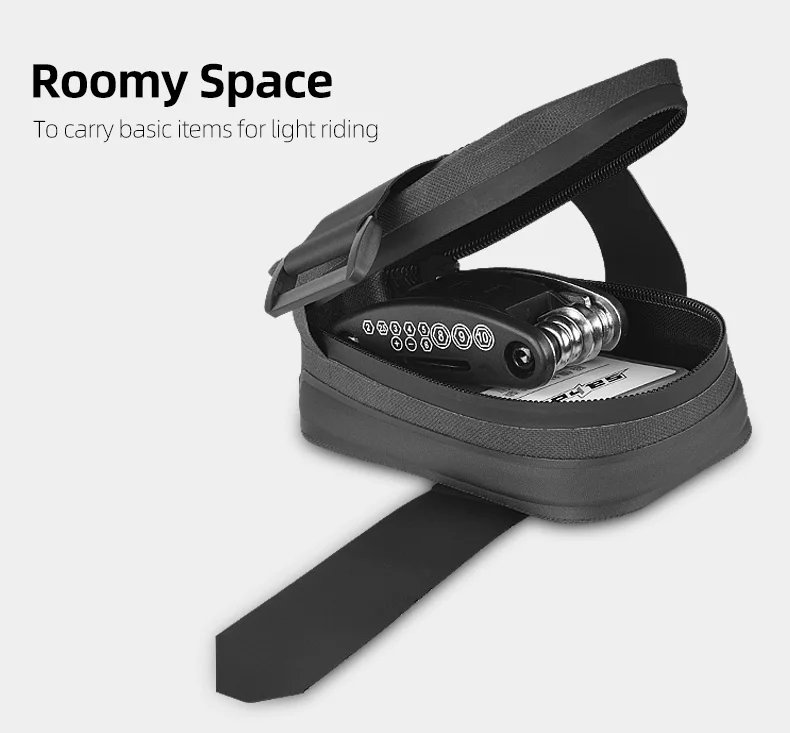 This saddle bag excels in rain tight performance. Made of water repellent material TPU & HYPLON and produced by taped seaming production rather than stich sewing, the bag provides a dry pack for the essentials when in rain. Well shaped in stand, not saggy even when empty, the bag is lined with pads at top, bottom and sides. Strong strap makes it firm stay at saddle rear below.