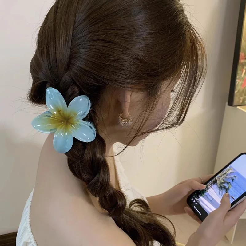 Bohemia Large Flower Acrylic Hair Claw Clip For Women Sweet Hair Claws Crab Clamp Barrettes Hawaiian Headwear Accessories Beach