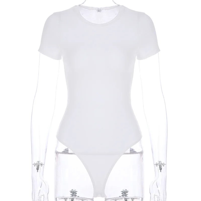 Casual Basic Black White Bodysuit Women Summer Short Sleeve Woman Body Top Cotton Bodycon Jumpsuit Romper Ladies 2023