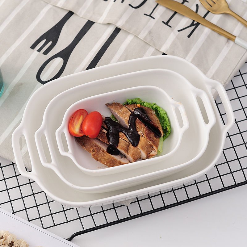 Specifications of Ceramic Binaural Baking Pan Pasta Cheese Baked Rice Bowl Baking at Home Rectangular Plate Oven Microwave Special Bowl