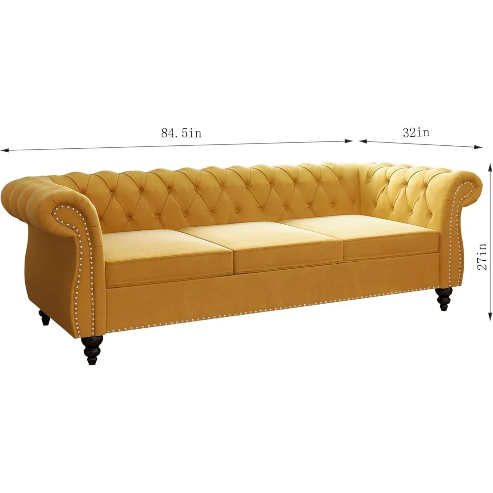 - 【Chesterfield Style】A tufted deep button sofa couch with nailhead accents, scrolling arms, and a Chesterfield-style design, it gives an atmosphere of luxury.