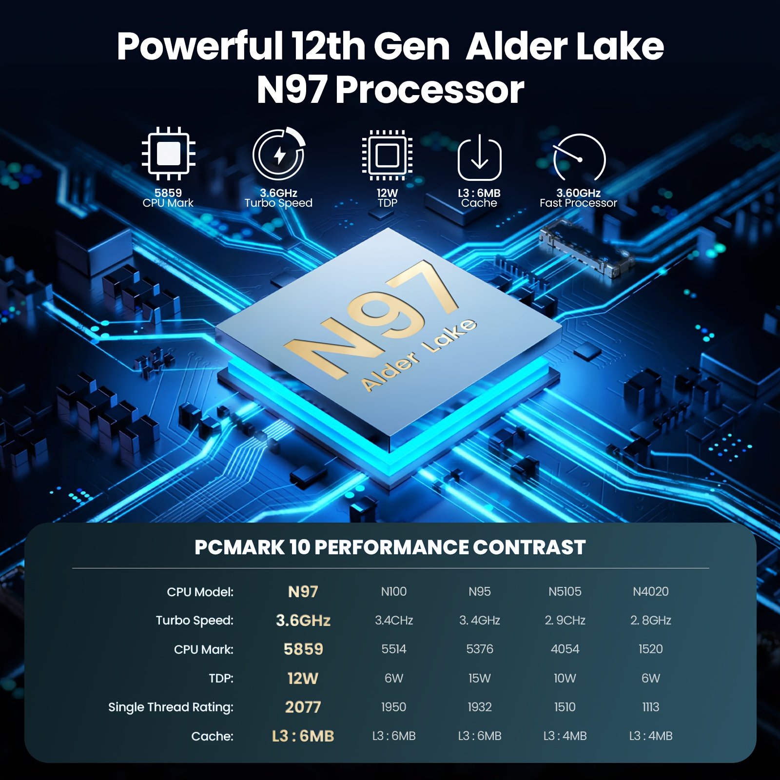 Compact 12th Gen Intel Alder Lake N97 Mini Desktop PC – Up to 3.6GHz, 16GB DDR4, 512GB SSD, 4K Dual Display, Wireless 5.0, WiFi 6, USB 3.2