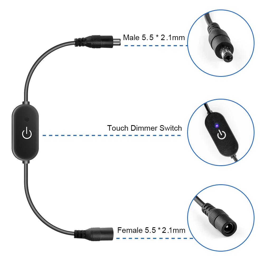 DC12V 5V 3A LED Tape Lights Touch Dimmer Switch Brightness Dimming Memory Function with DC Plug for 5050 SMD COB LED Strip