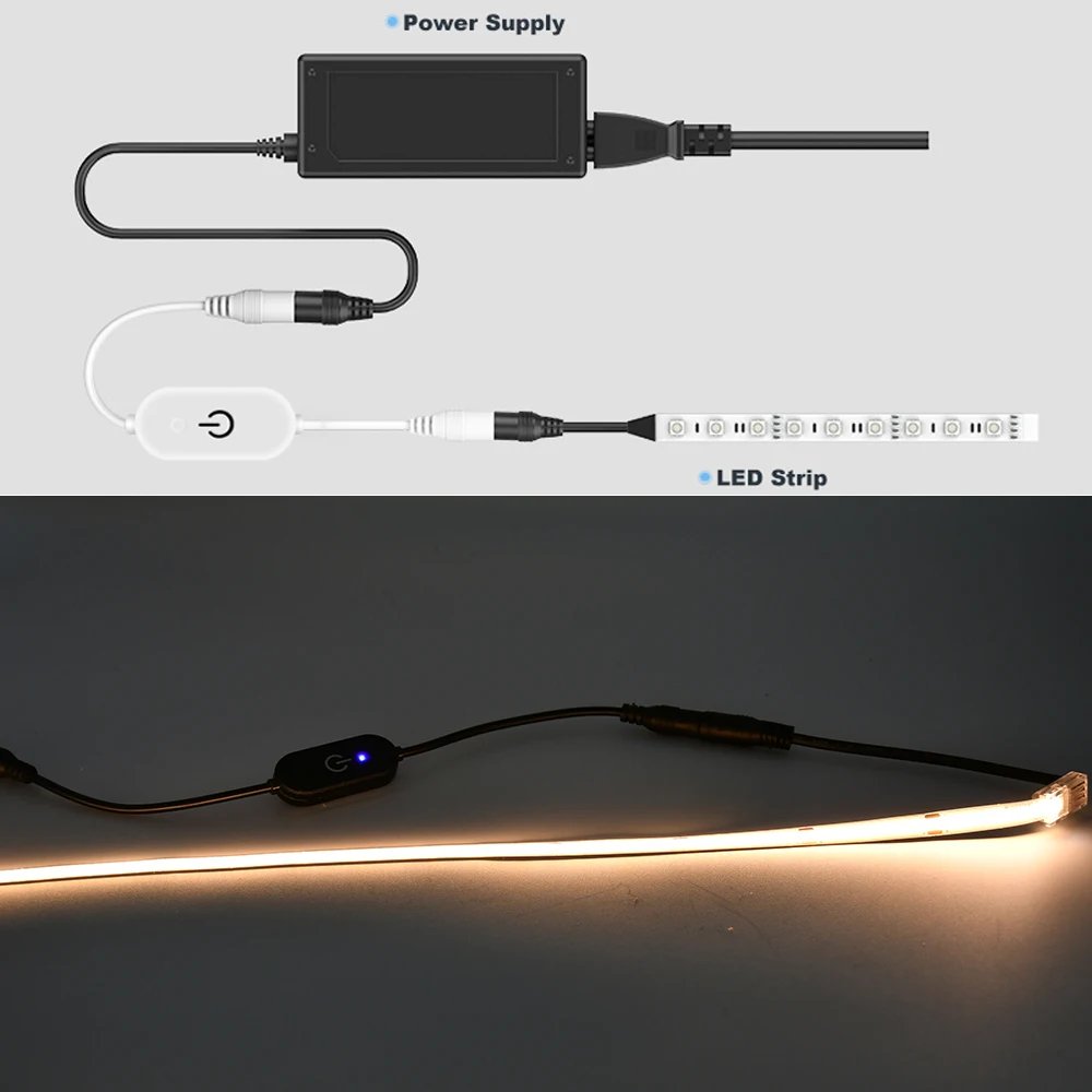 LED Strip Touch Dimmer Brightness Dimming Switch Memory Function 12V 5V 3A COB SMD Tape Lights Switch Adjustable with Indicator