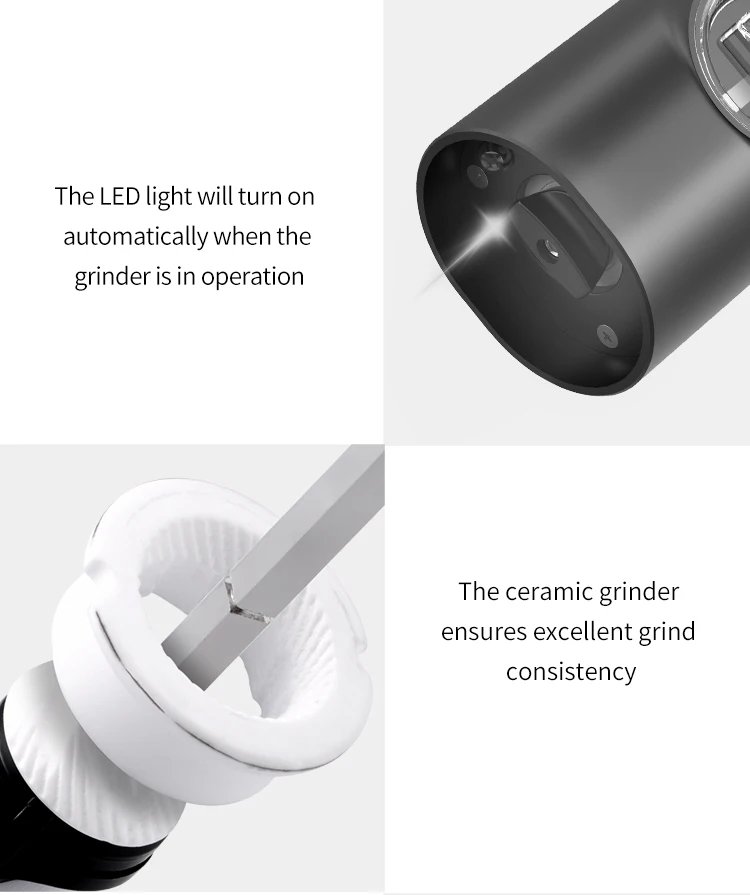1.Automatic Operation: Our pepper grinder adopts advanced gravity sensing design, No need manual grinding, no buttons to press,great for customers suffering of Chronic Hand Pain. Simply flipped the grinder and you will have fresh ground spices.
