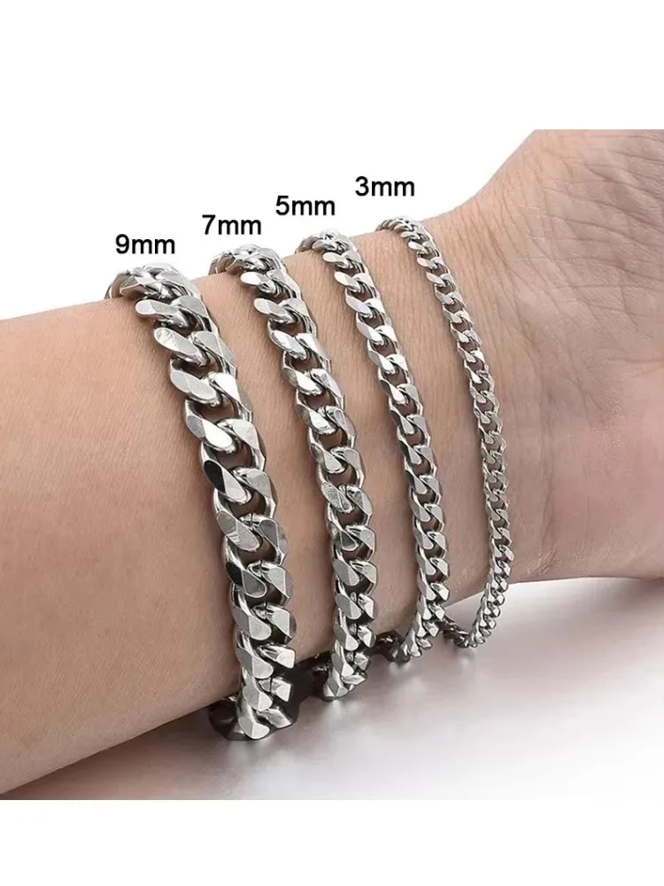 Fashion Stainless Steel Men Curb Cuban Chain Bracelets Women Bracelet on Hand for Couple Unisex Wrist Hand Jewelry Gift