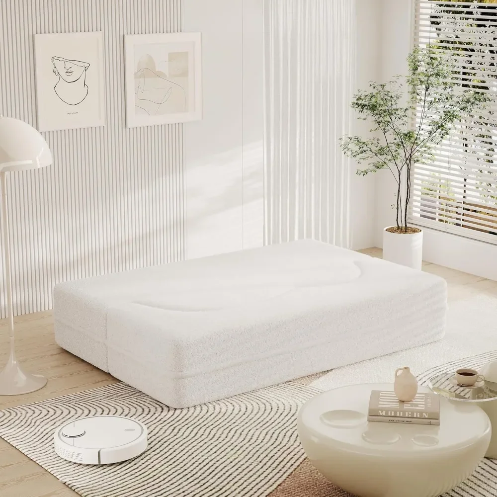 - QUALITY MATERIALS: Our cream couch is made of soft and breathable high-density teddy fabric, giving you a cloud-like wrapping feeling. And it is different from other ordinary compression full-pressure sofas, our built-in spring packs give the entire sofa bed plenty of support.