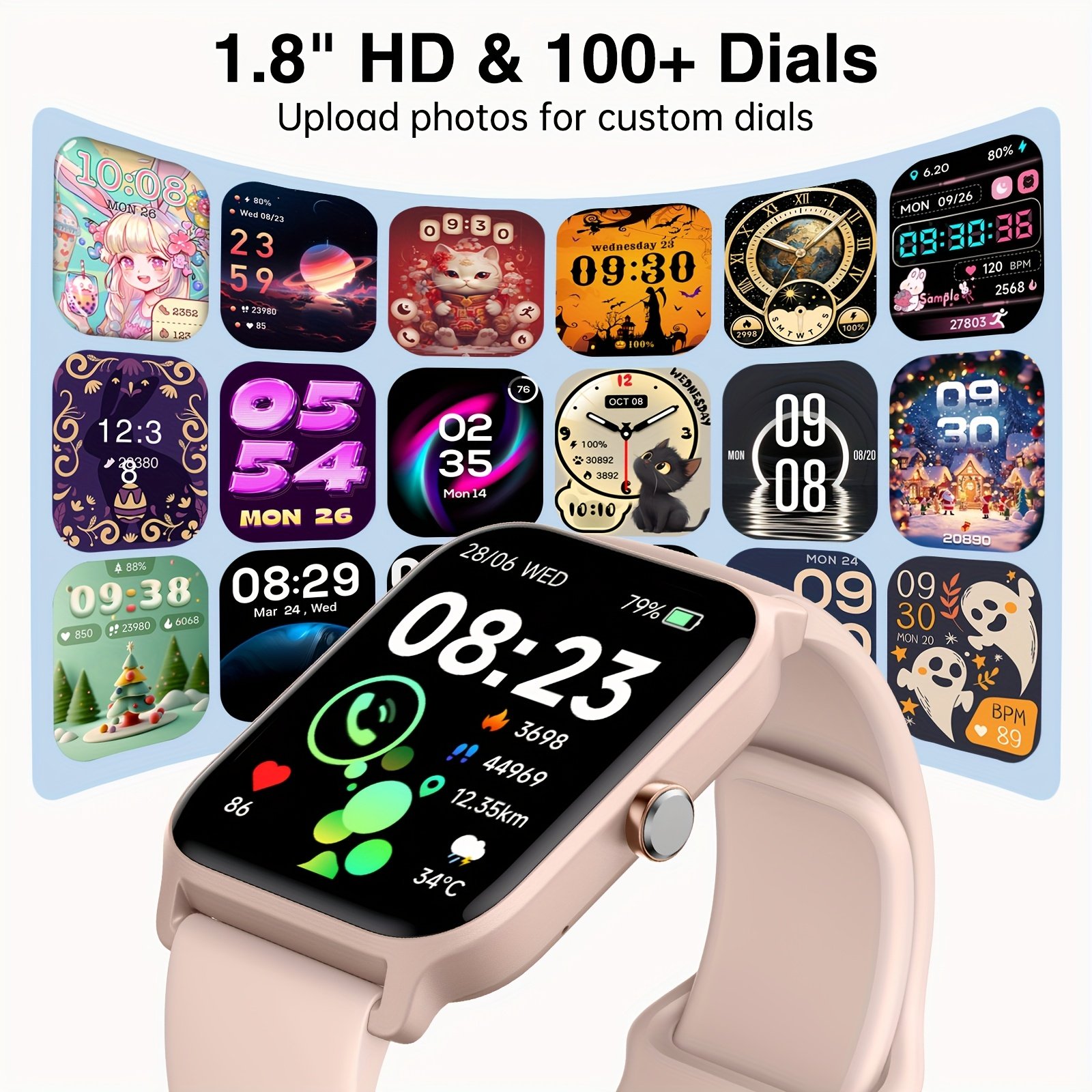 FUVEHA Sleek Pink Smartwatch with Call Answering – 1.8&quote; HD Display, 105+ Sports Modes, Fitness & Step Tracker, for Android & for iPhone – USB Rechargeable, IP68 Waterproof – Perfect Gift for Loved Ones