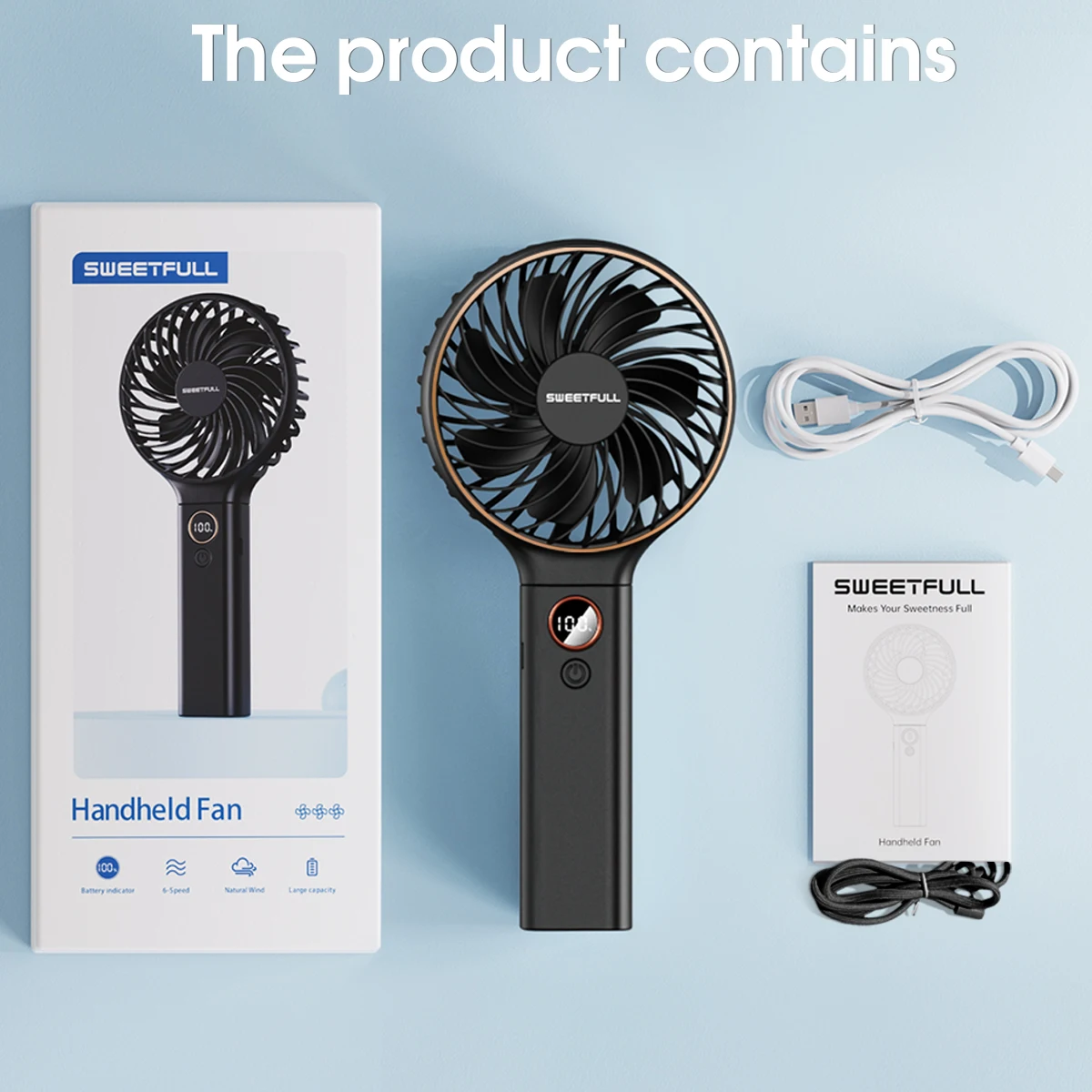 LED Display & 6 Speeds: LED display for real-time gear and remaining power display. Hand-held mini fan with 6 adjustable speeds, gradually increasing from 1 to 5, with a 6th intermittent mode cycling between different speeds for diverse uses. Stay cool anywhere.