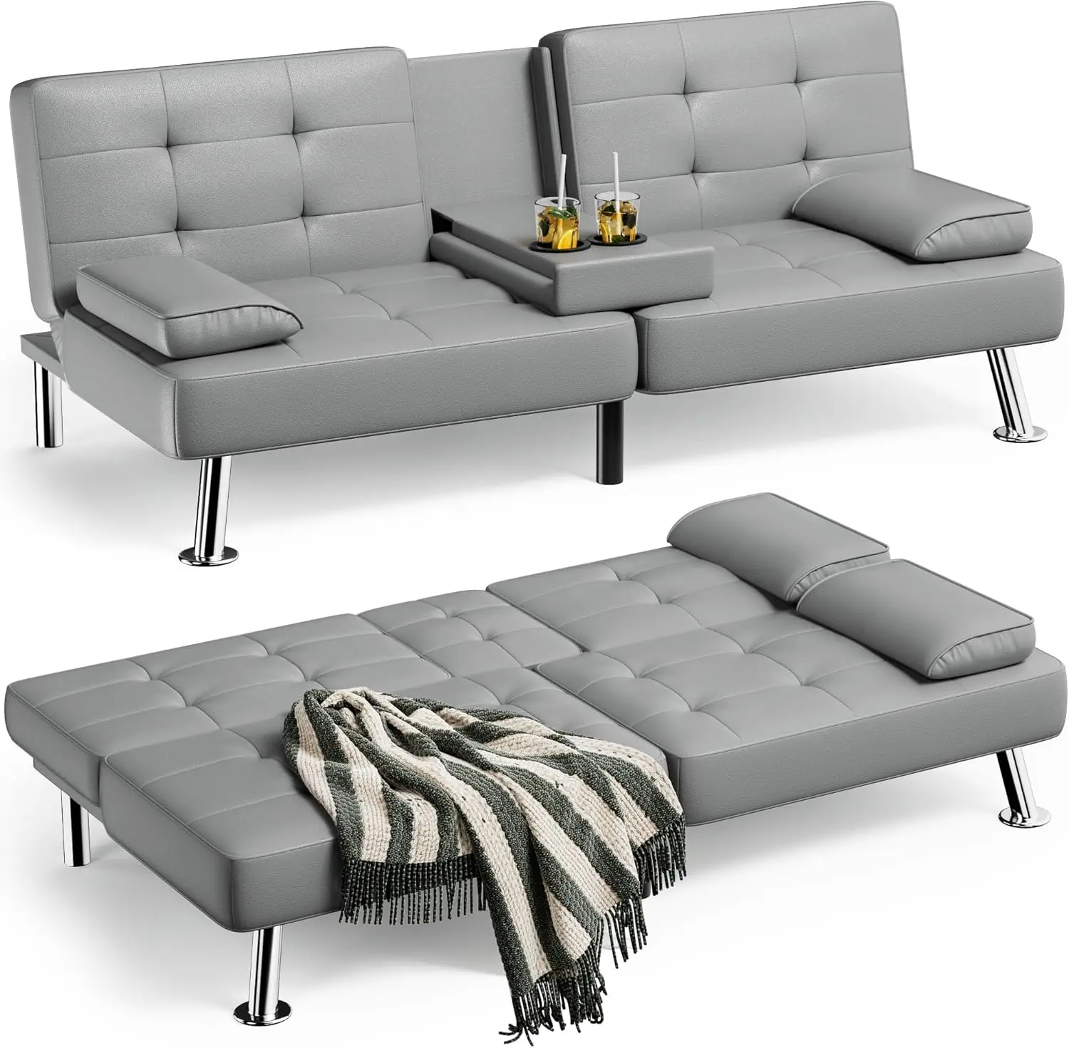 - [Dual cup holders]: The leather futon sofa is conveniently positioned cup holders ensure that your drink is within easy reach, perfect for leisurely enjoying your favorite beverage. It can also be hidden away when not in use, keeping the sofa neat and beautiful.
