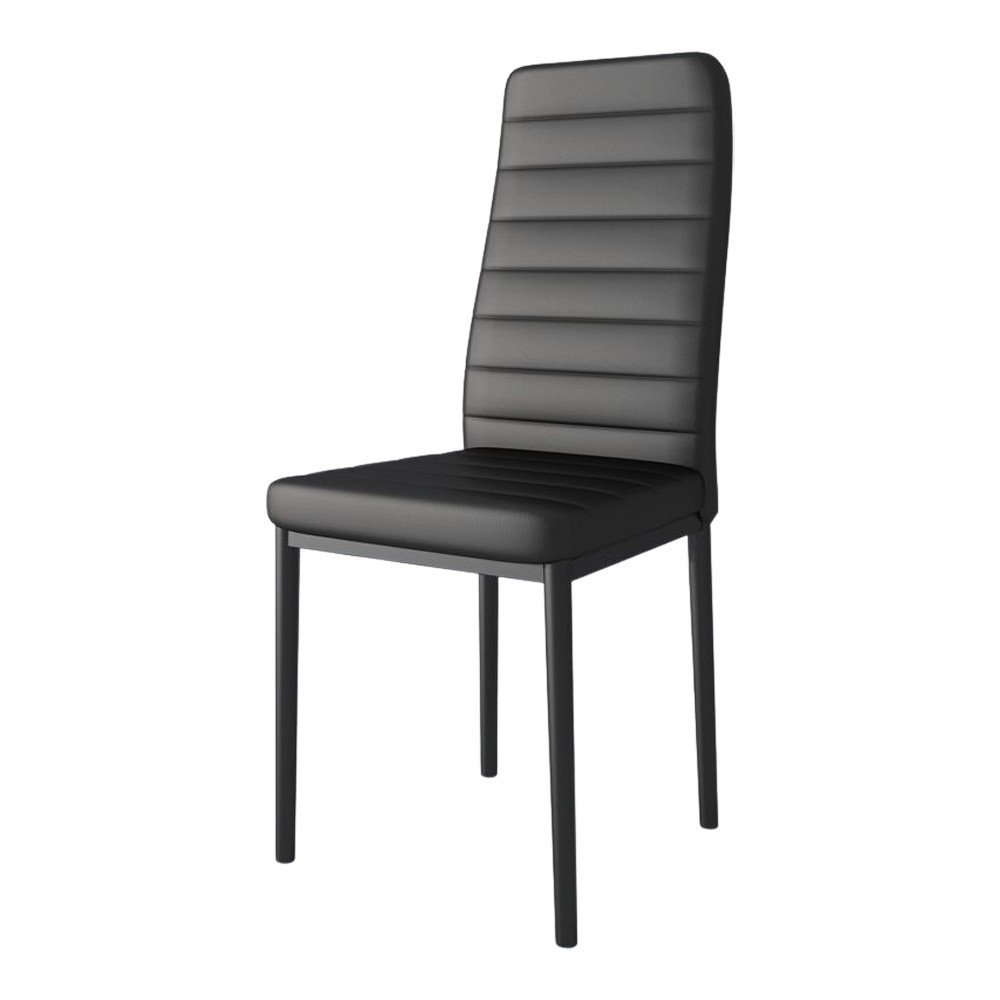 it showcases a foam cushioned backrest and seat upholstered in PU leather, complete with ribbed detailing for a touch of elegance.