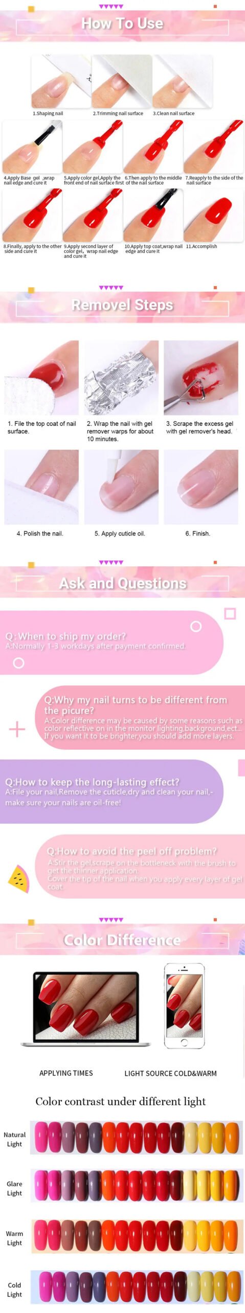 Long lasting for at least 15-21days, fantastic and super bright nails for you.