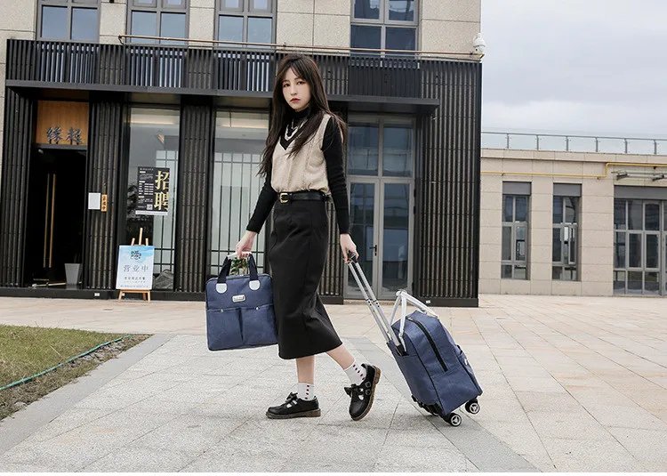 New Waterproof Duffel Portable Travel Suitcase Unisex Expandable Folding Luggage Bags with Wheel Night Bags Overnight