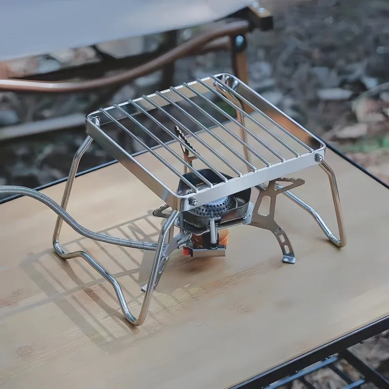 1.Camping Stove: Portable and Multifunctional This camping stove is compact and easy to carry, making it for outdoor adventures. It's not only a stove but also a campfire grill, allowing you to cook delicious meals while enjoying nature.