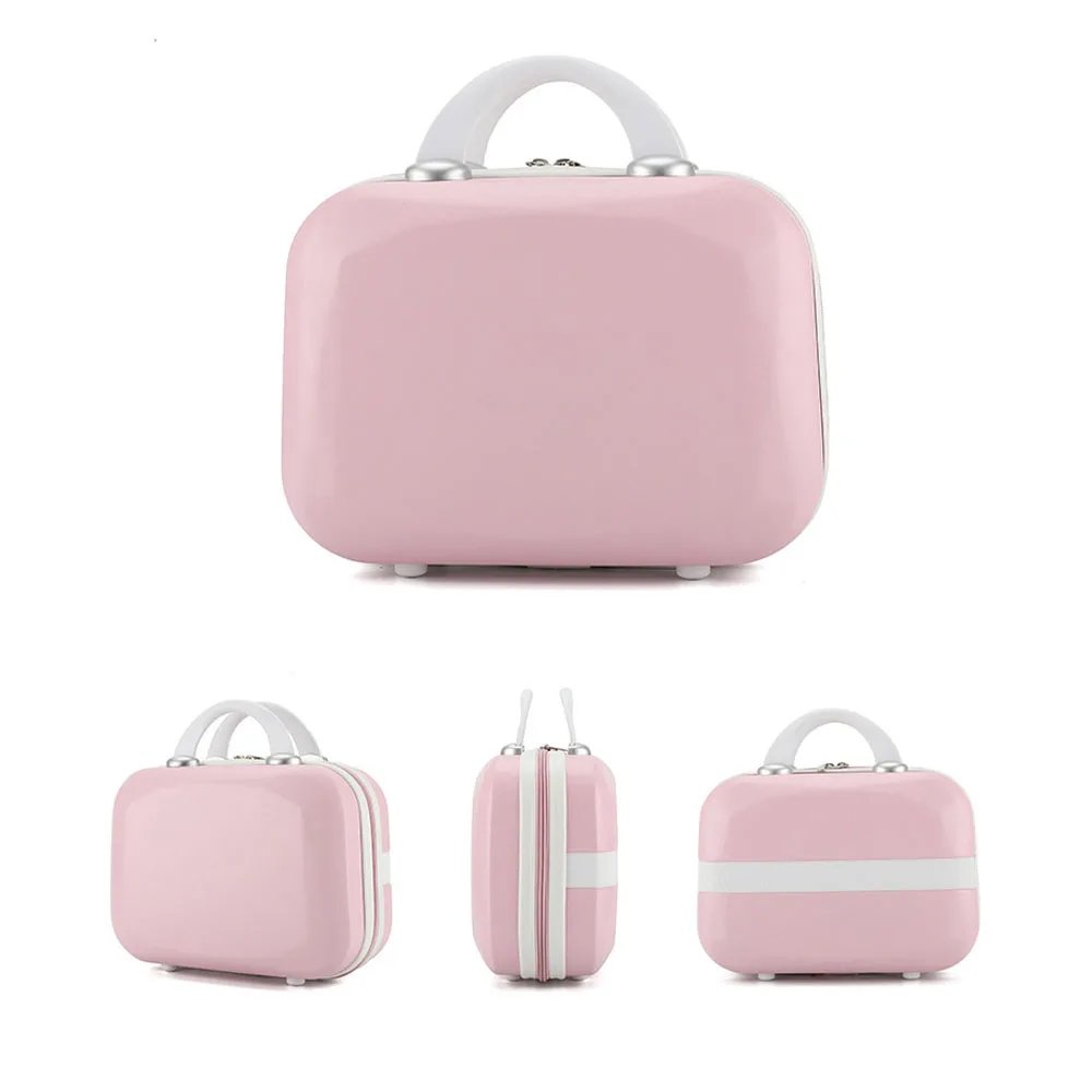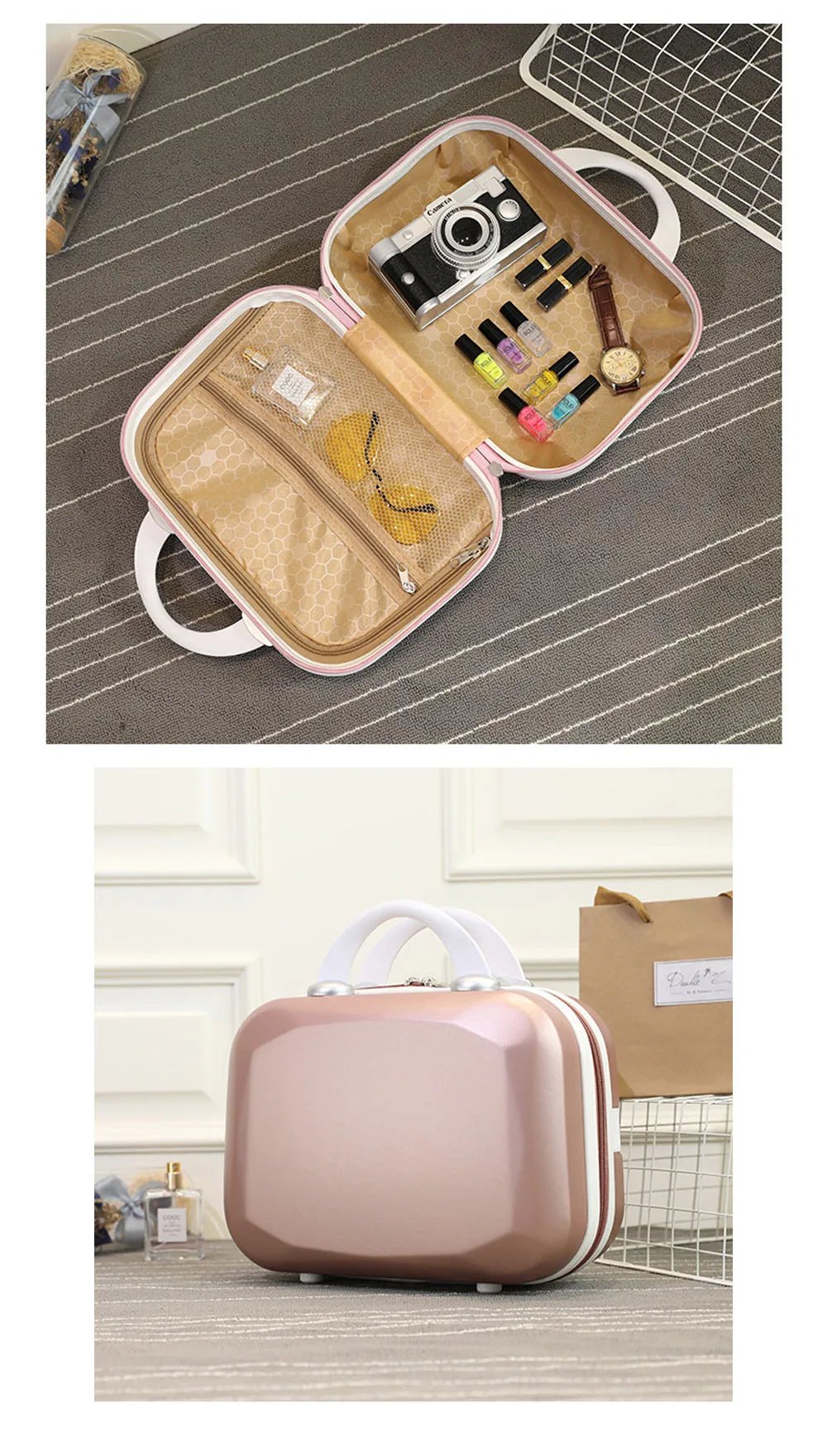 Pink/Blue/Purple/khaki 14 Inch Cosmetic Bag Small Women Travel Suitcase Luggage Compressive Material Size:30-15.5-23cm