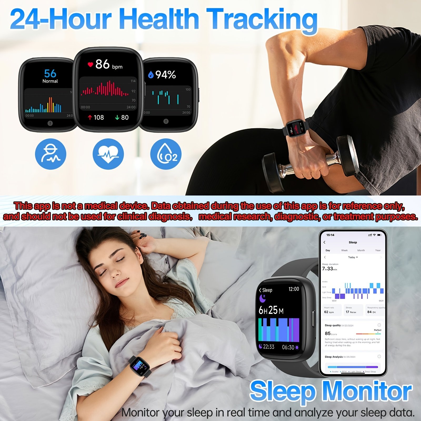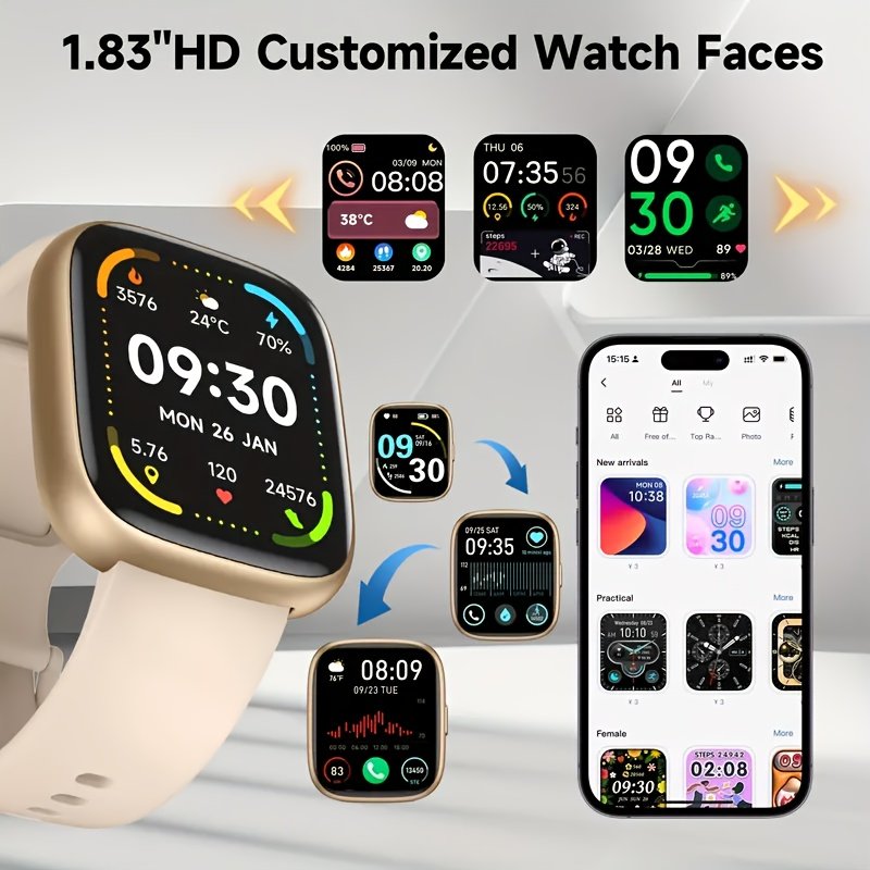 RJHGP 1.83&quote; HD Display Alexa Built-in Smart Watch For Men And Women, 100+ Sport Modes Fitness Tracker With Answer/Make Calls, For IOS &Android Compatible