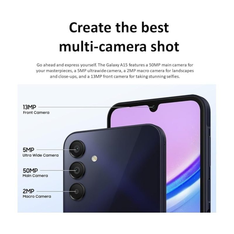 SAMSUNG GALAXY A15 LTE Blue 6 +128GB Dual Sim, Android, Smartphone, GMS Unlocked, International Version. Does not work with CDMA carriers