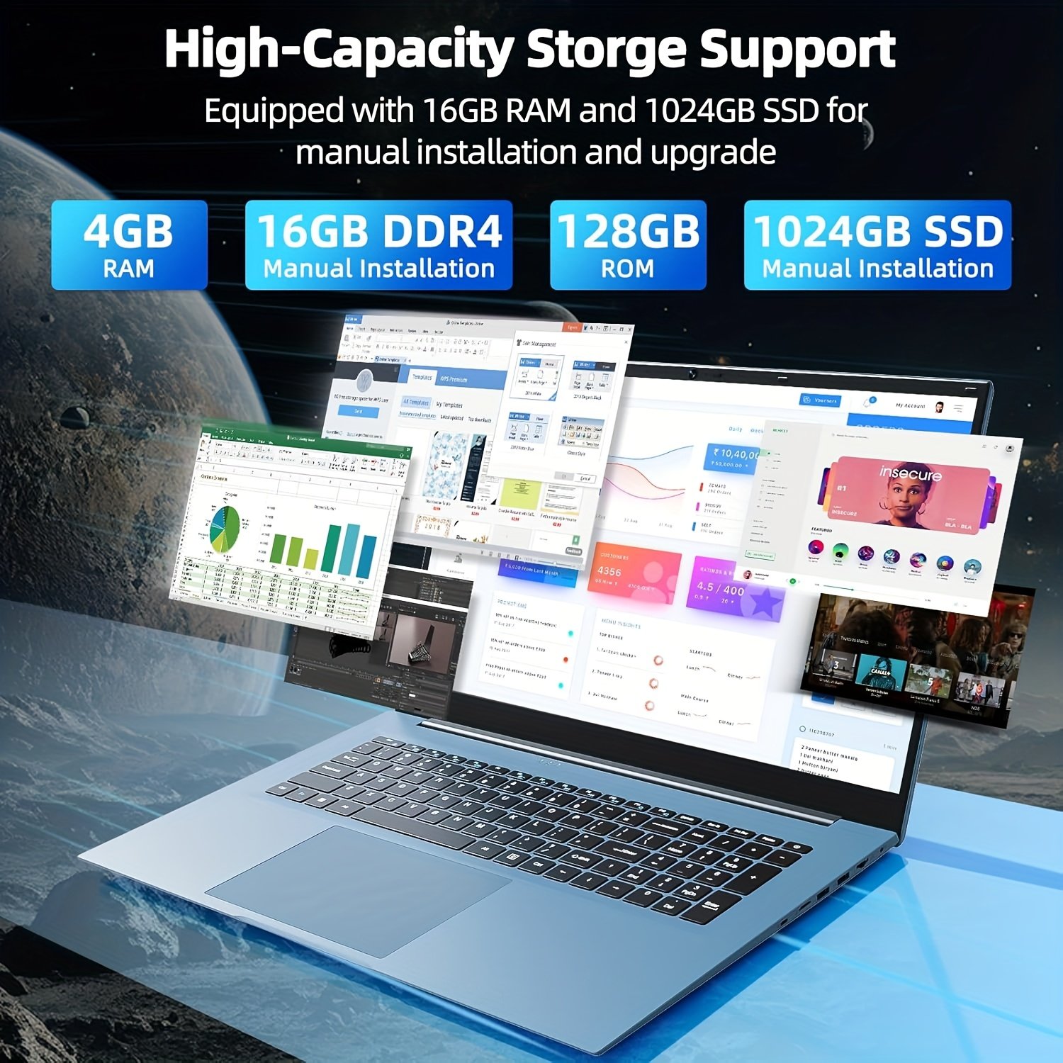 SGIN 18.5 Inch Laptops With 20GB RAM 128GB EMMC+1024GB SSD, Celeron N5095 Quad-Core, Office 365 1-Year Subscription, 180°Hinge, WiFi 6, Wireless 5.2, USB, Type-C, HDTV, 8000mAh