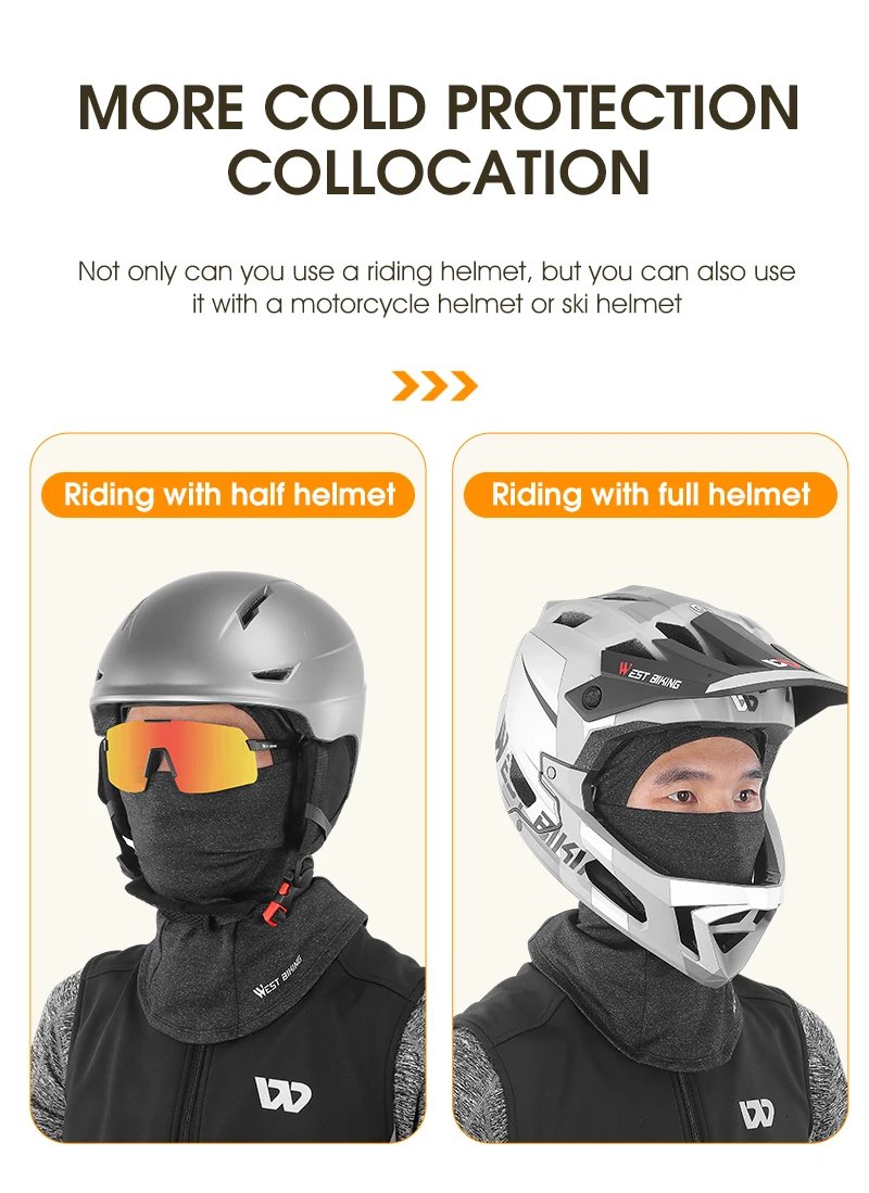 WEST BIKING Winter Cycling Scarf Fleece Keep Warm Balaclava Men Women Bicycle Hat Headwear Ski Helmet Liner Windproof Sport Cap