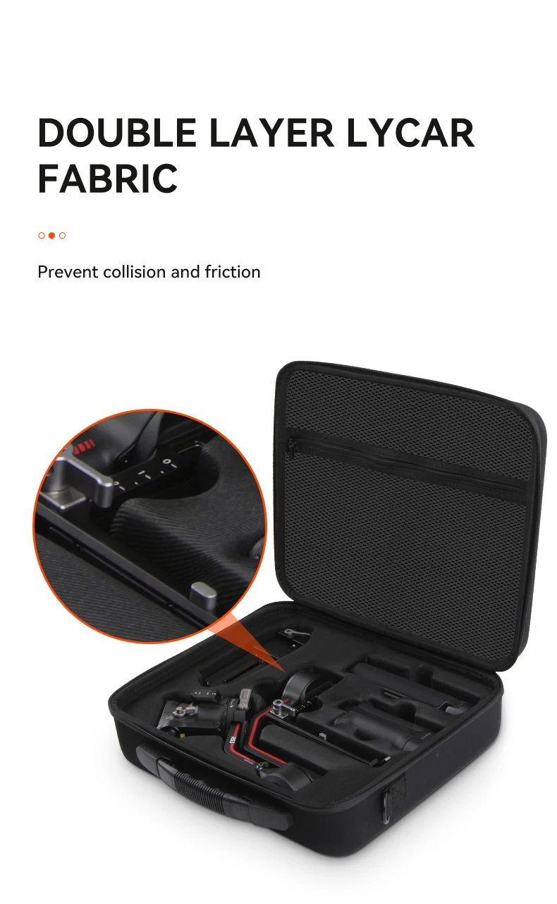 2. Integrated molding, Double layer lycra lining is tailored for DJI RS 4 /3, simple fashion, compression, and wear resistance, more practical and convenient.