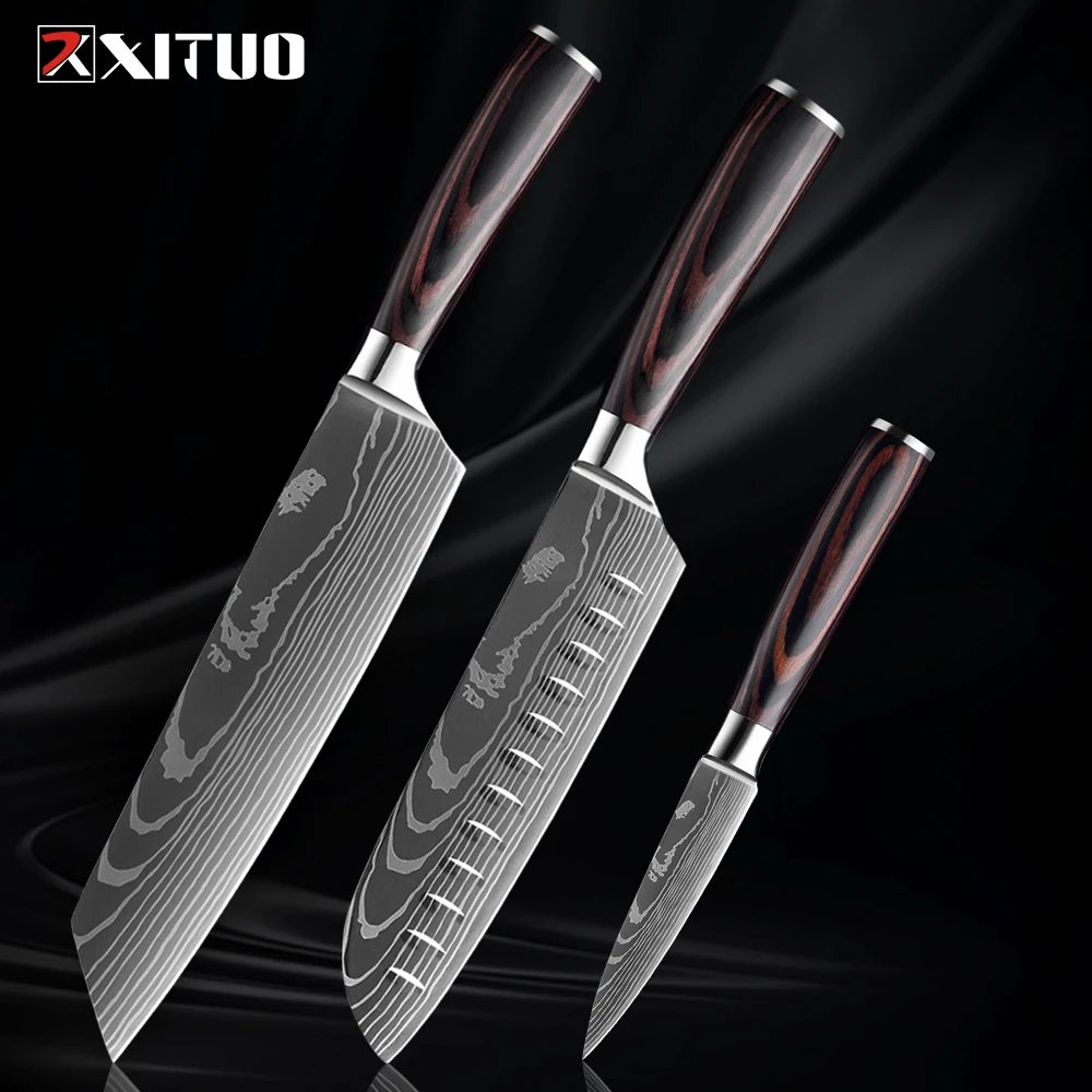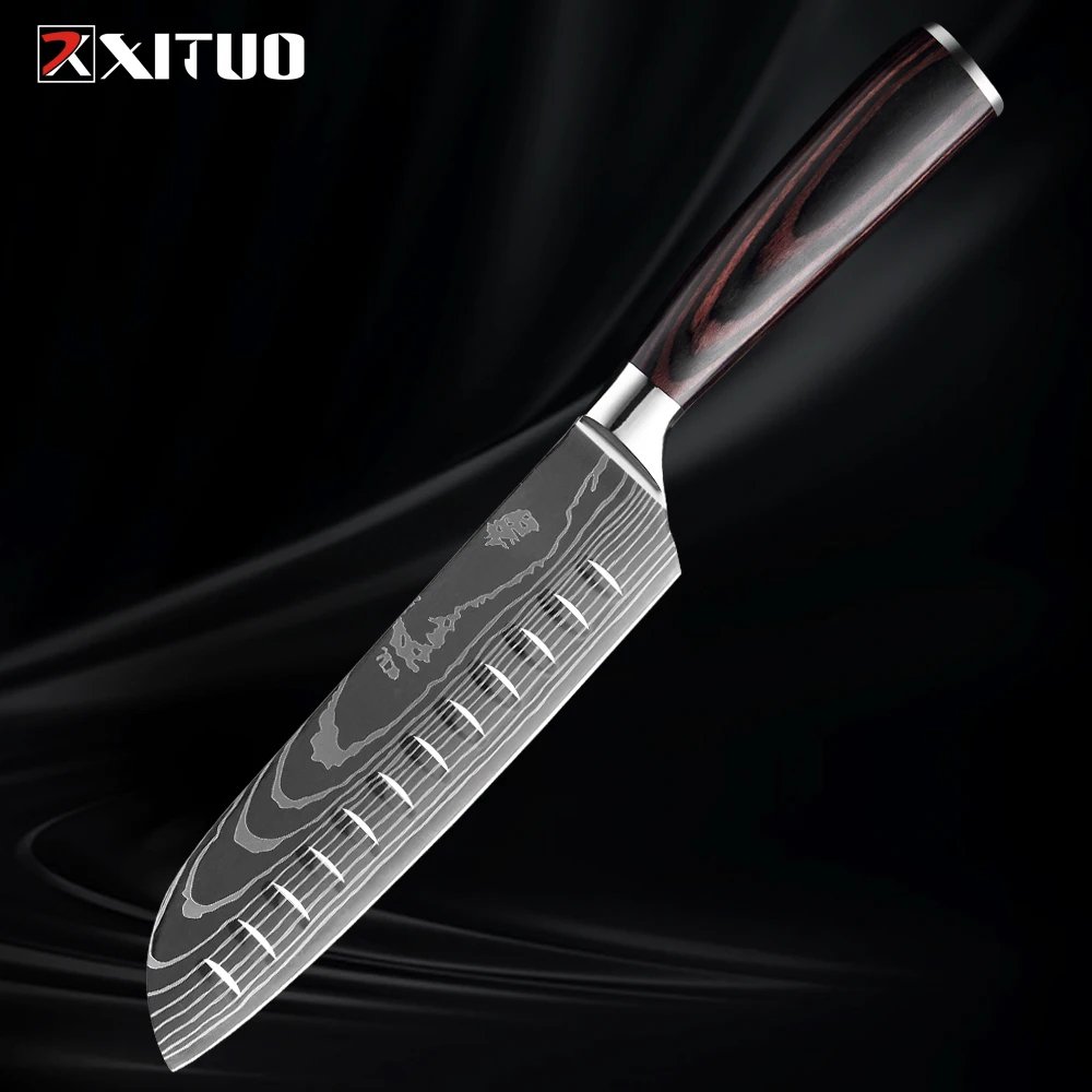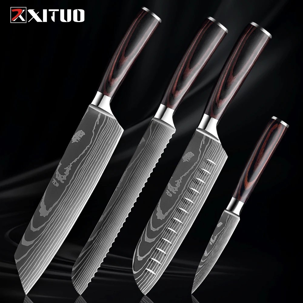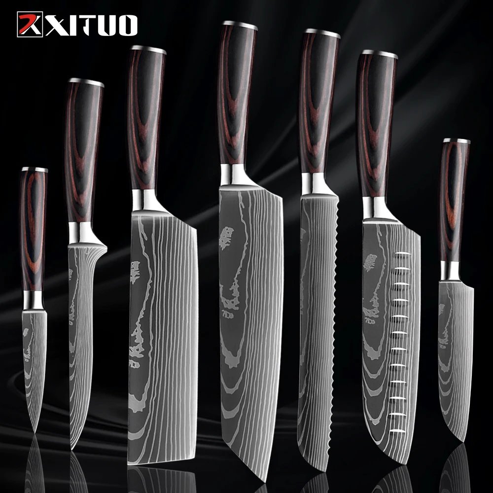XITUO Kitchen Knife Set 1-9PCS,7Cr17Mov Stainless Steel Sharp Chef Knife Santoku Knife Fruit knife Ergonomic Pakkawood Handle