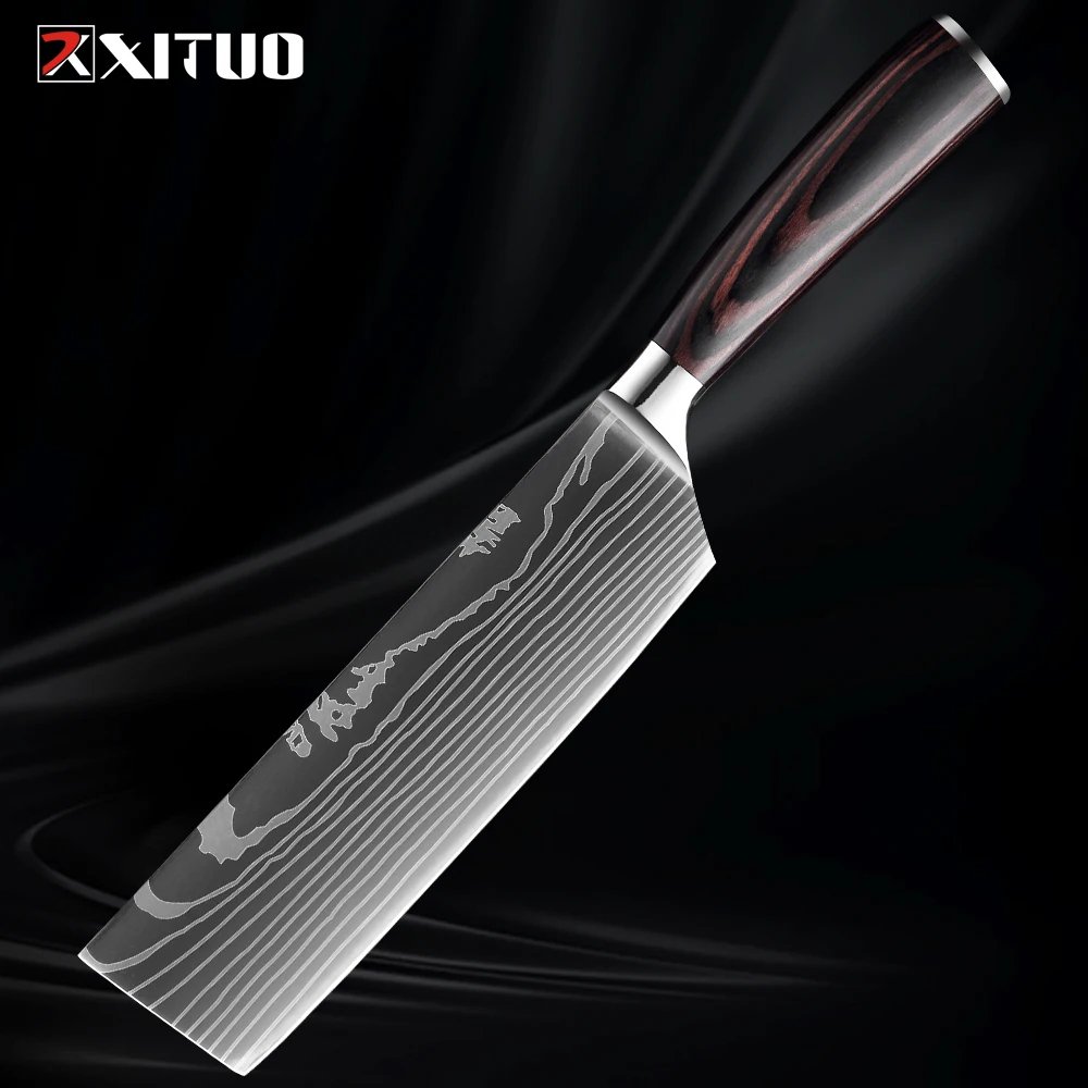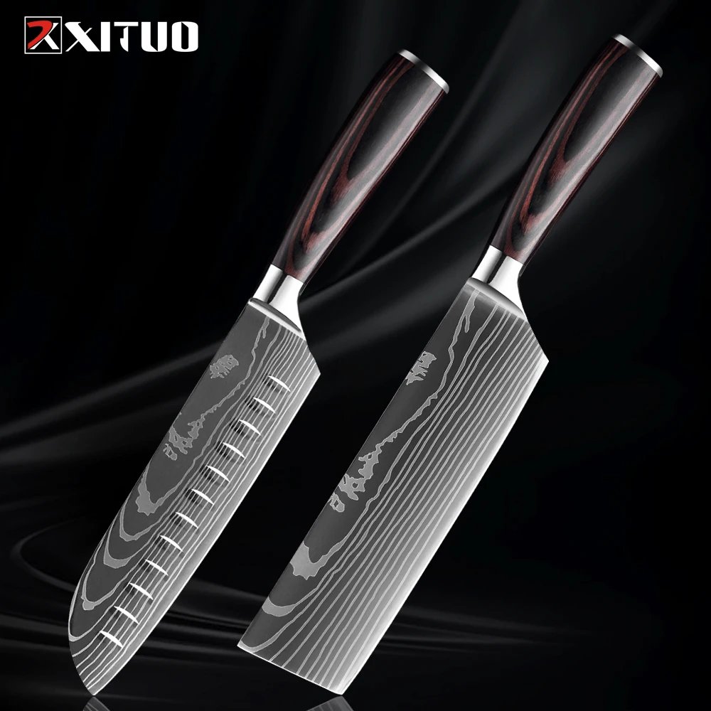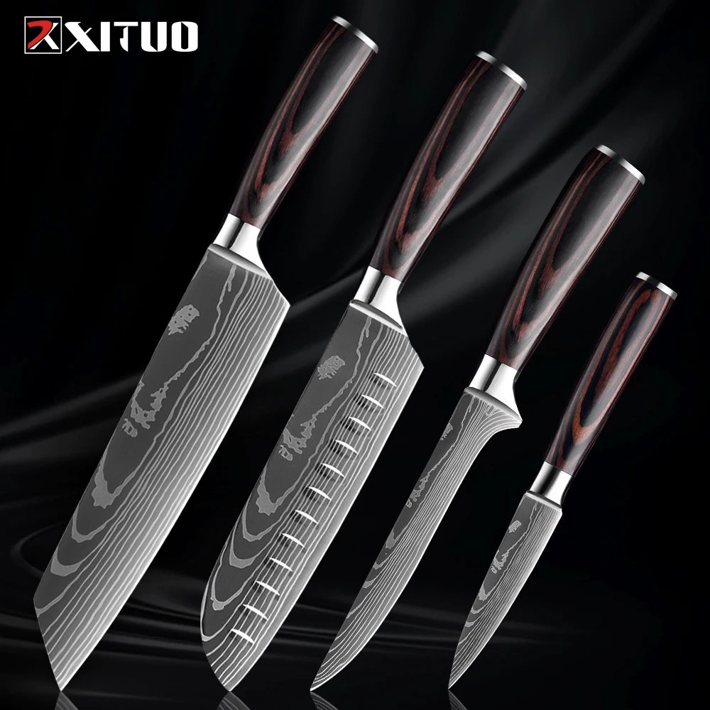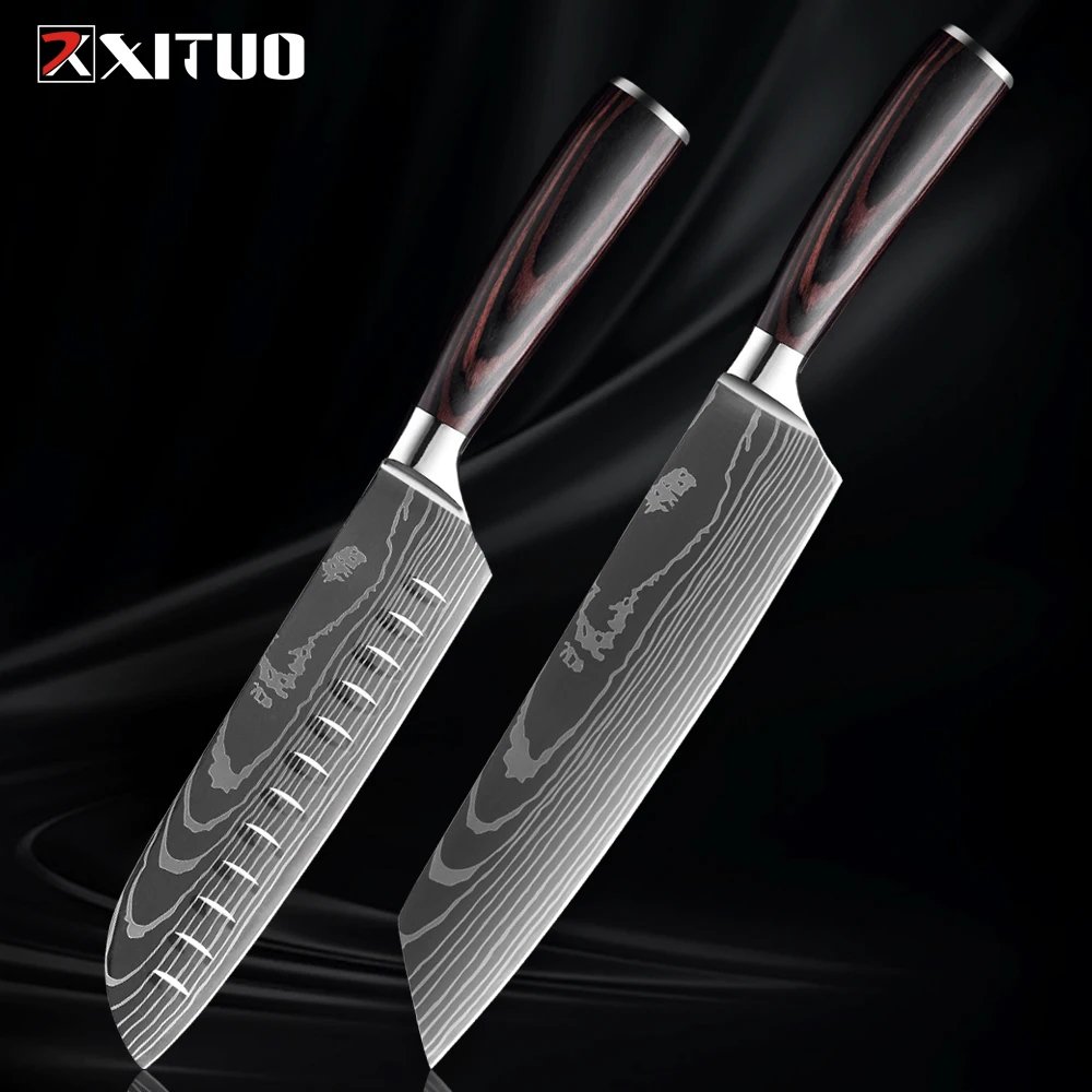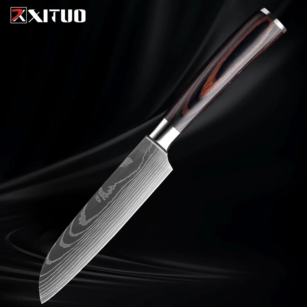 XITUO Kitchen Knife Set 1-9PCS,7Cr17Mov Stainless Steel Sharp Chef Knife Santoku Knife Fruit knife Ergonomic Pakkawood Handle