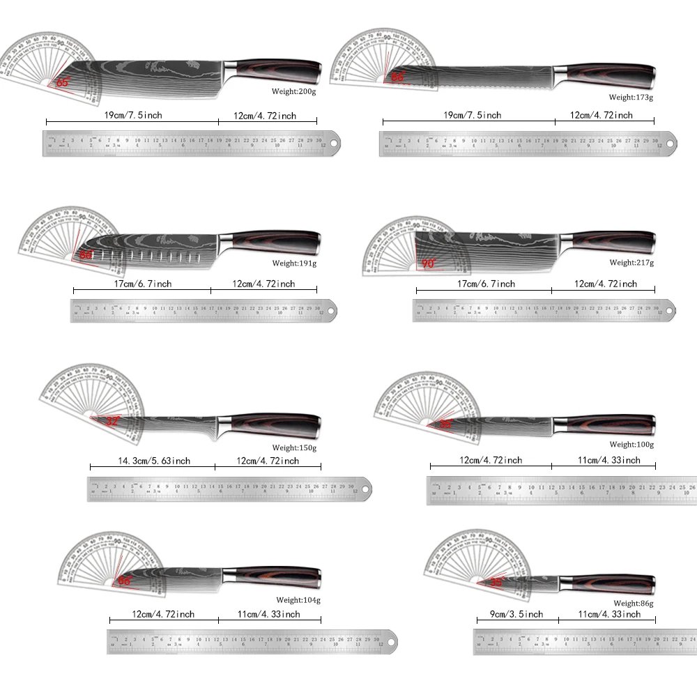 - Knife Style : Chef Knife,Bread Knife,Cleaver, Santoku Knife,Nakiri Knife,Boning Knife,Utility Knife,Paring Knife