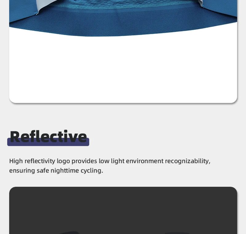 •High reflectivity logo provides low light environment recognizability, ensuring safe nighttime cycling.