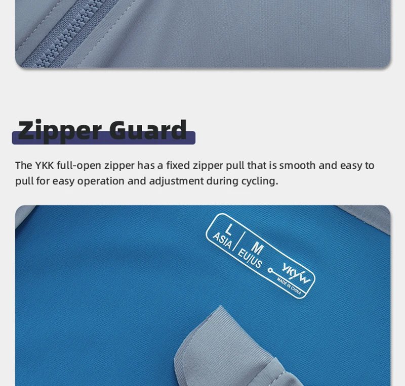 •The YKK full-open zipper has a fixed zipper pull that is smooth and easy to pull for easy operation and adjustment during cycling.
